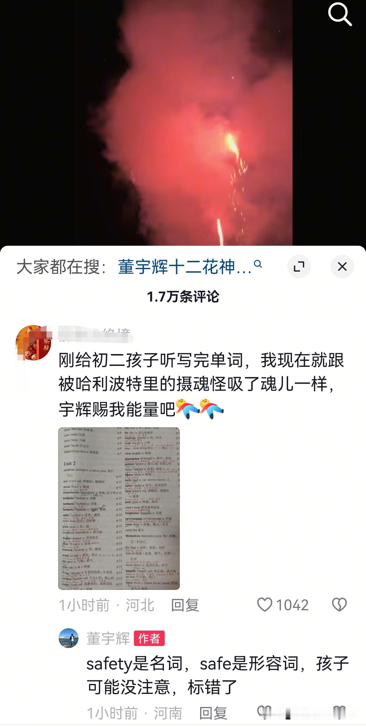 宇辉正在回北京的高铁上, 评论区信息量太大了, 网友问他“安排相亲了没?”他回答:“我看身高要求1米8,就没去。” 还有网友问他胖了没有,他说胖了十几斤! 想必是坐高铁太无聊,他似乎一直在评论区回复网友的提问,还不忘给孩子指出写错的单词。 全程在线翻牌互动,又搞笑又可爱,轻轻松松和大家聊天,这一路返程,有这么多网友陪着,他应该一点都不孤单了![笑哭]