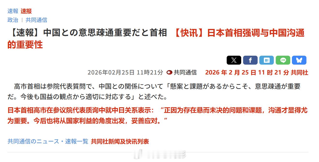 日本首相高市早苗今天在谈到中日关系时表示:"正因为存在悬而未决的问题与挑战,(与中国的)沟通才显得尤为重要。今后仍将从国家利益出发,采取妥善应对措施。"