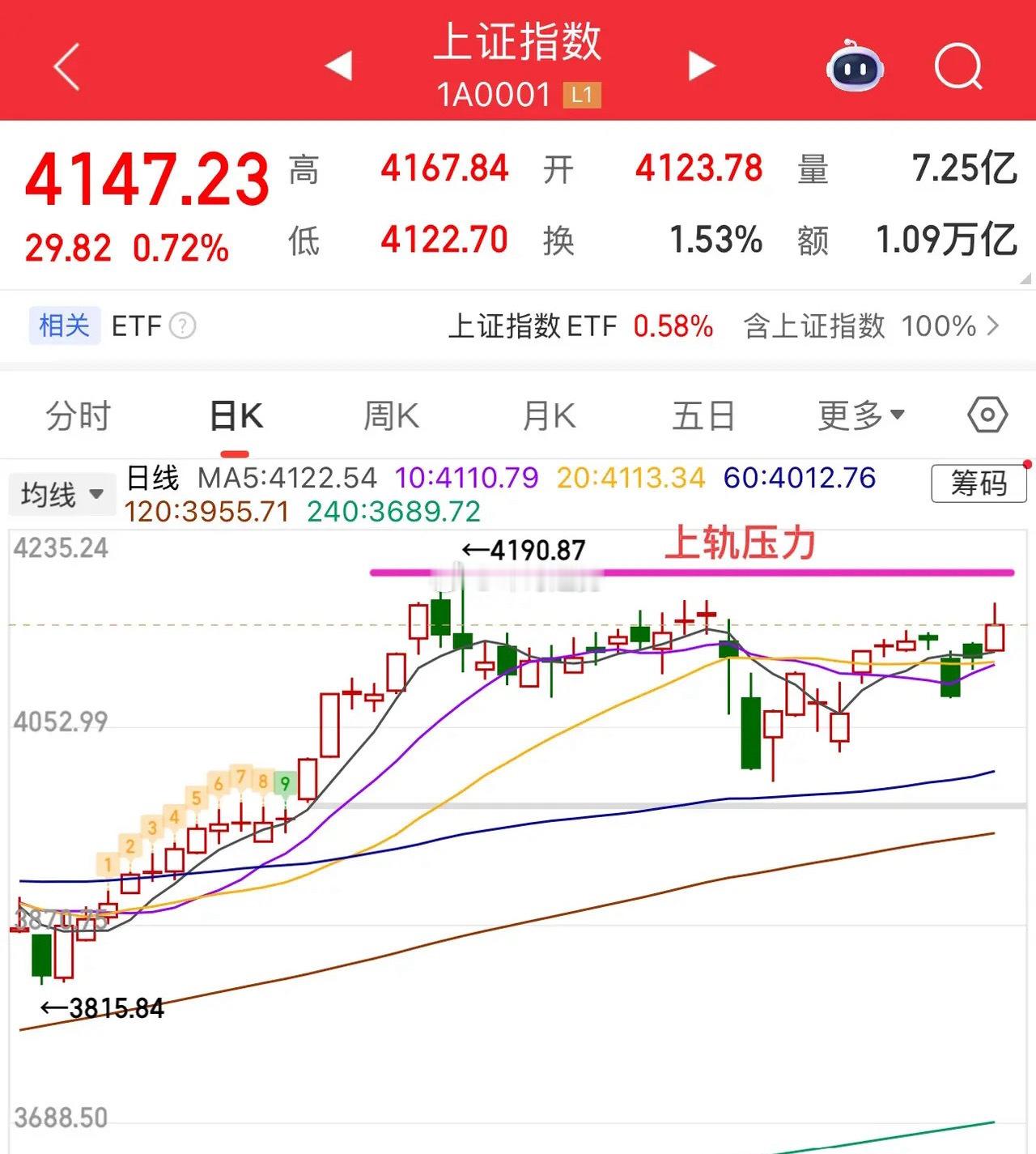 大盘两连阳,涨价题材持续爆发!还能延续? 周三大盘延续反弹走势,不过午后有一波比较明显的回落,说明往上有比较明显的压力,另外就是连续两天个股普涨,短线有获利抛压,所以打到压力位4170,4190附近有回落震荡是正常的。成交量方面有所放大,回到了2.5万亿附近,说明节后资金有在慢慢回流。 技术面看,大的中枢箱体震荡没有改变,往上往下的观点不变,仍以均线得失辨别上下轨的方向。当前还是以震荡市看待比较合适,板块会有轮动表现,所以这两天涨的多的,像涨价题材这类的,可适当落袋,没有涨的,耐心等轮动,做好自己的节奏更重要。 所以,大家也不要觉得大盘涨了两天,手里的个股却没动,就很着急,有时候就是一根阳线的事,这两天涨的都不是前期热点方向,老登股大部分都不是散户去的方向,关键还得看手里的品种是否走势正常,是否结构保持完整。 总之,板块会有轮动,拉长一点时间轴,需要保持一点耐心。 个人观点,仅供参考!