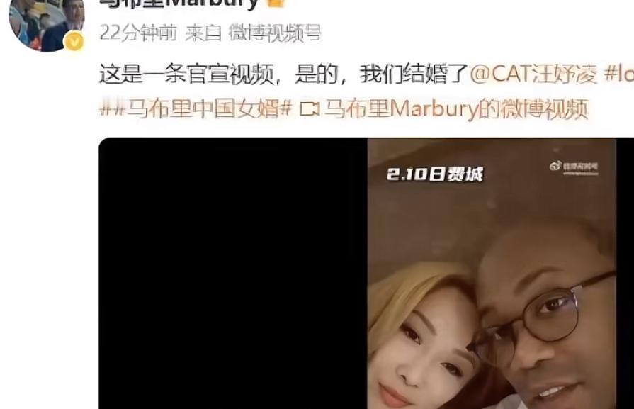 马布里是真的结婚了 刚不久,他在V博晒出与女友的恩爱照.,对象是曾唱过《中国好声音》的汪某凌。 一个打球的爱上了一个湖北姑娘,这一点都不稀奇,毕竟中国姑娘热情奔放,温柔贤淑,自力更生,还不用供着养着,你还想要什么呢! 虽然年纪比女的大10几岁,马布里也不赖,在咱们这也算是很认真努力的一名蓝球奇才,是首钢拿3个冠军大功臣。 不得不说,这个湖北女歌手绝对的有眼光,国内优秀的男同胞多得去了,人家偏偏选中了“黑、大、优”,后面的结局就不予置评,现在祝福“白头偕老”,似乎早了一点。