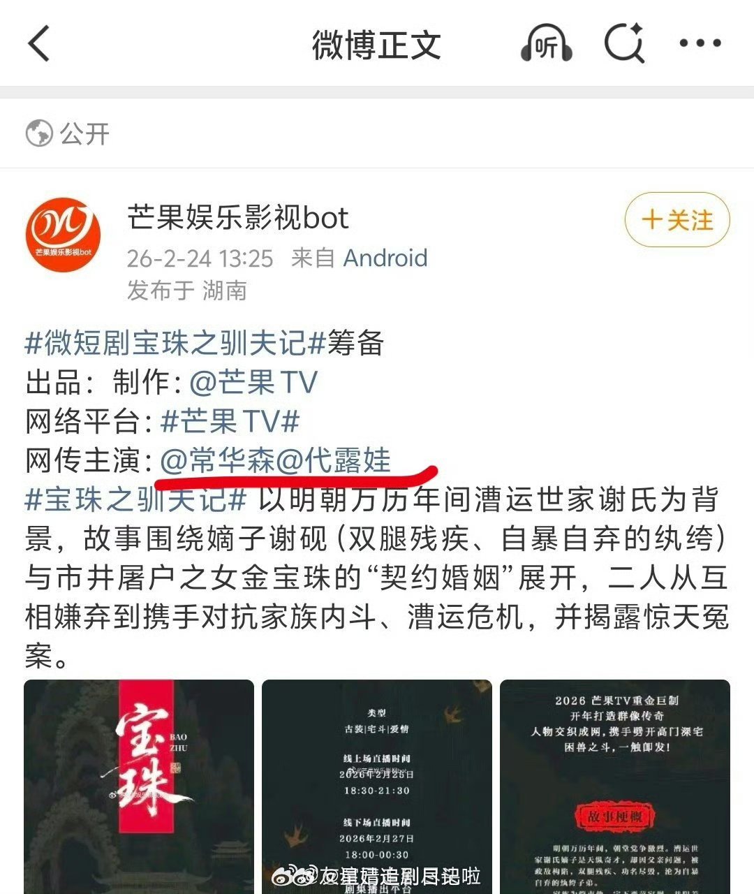 代露娃这部芒果tv的这部剧是和常华森二搭?那粉丝快别骂了,这部再掉饼就亏了 代露娃 短剧