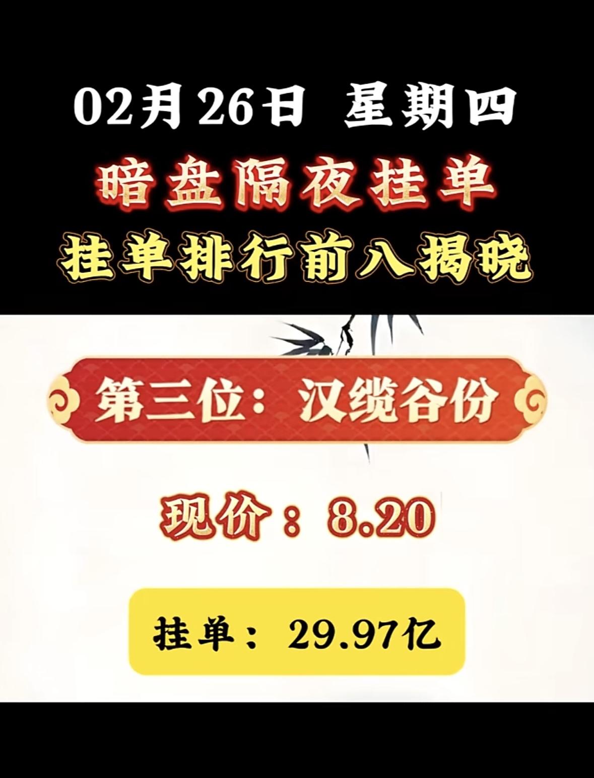 协鑫集成位列第八,现价4.89,挂单23.50亿! 航天发展暗盘挂单居首,资金热情高涨,市场关注度飙升,潜力股引投资者瞩目。