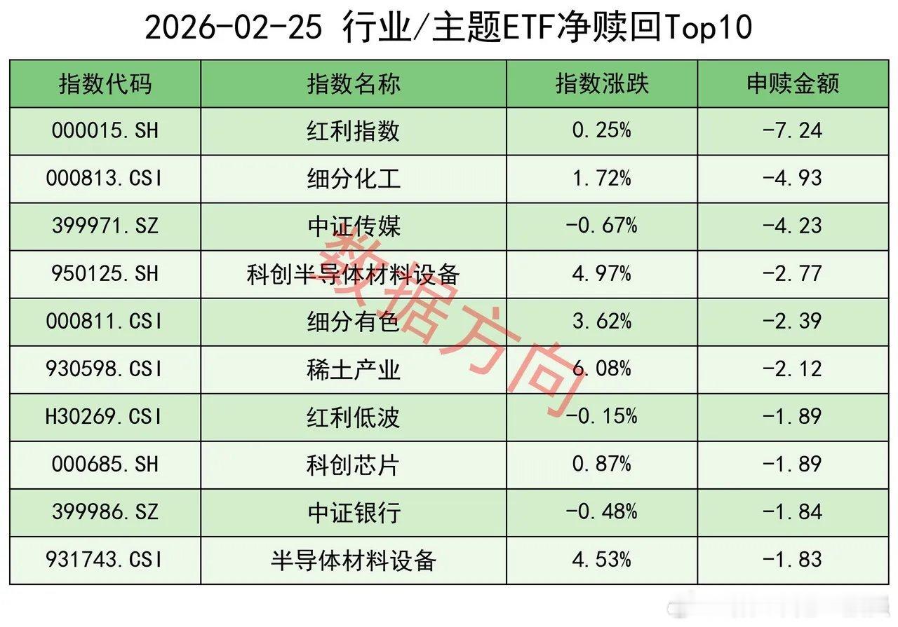 细分化工指数(-4.93亿)、细分有色指数(-2.39亿)、稀土产业指数(-2.12亿),一起进入赎回榜。