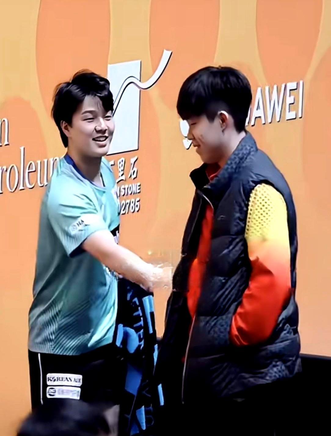 赛场上拼个你死我活,赛场下直接钻进王楚钦怀里撒娇。 你没看错,就是韩国队那个安宰贤。搂着脖子不撒手,还上手摸摸肚子,那眼神,就差把“迷弟”两个字刻脸上了。 上一秒,王楚钦刚用一个干脆的3-0把他淘汰。下一秒,俩人就在场边勾肩搭背,笑得像两个地主家的傻儿子。从小一起打到大的交情,早就超越了输赢。 所以说,到底是英雄惜英雄,还是安宰贤真的离不开“头哥”?