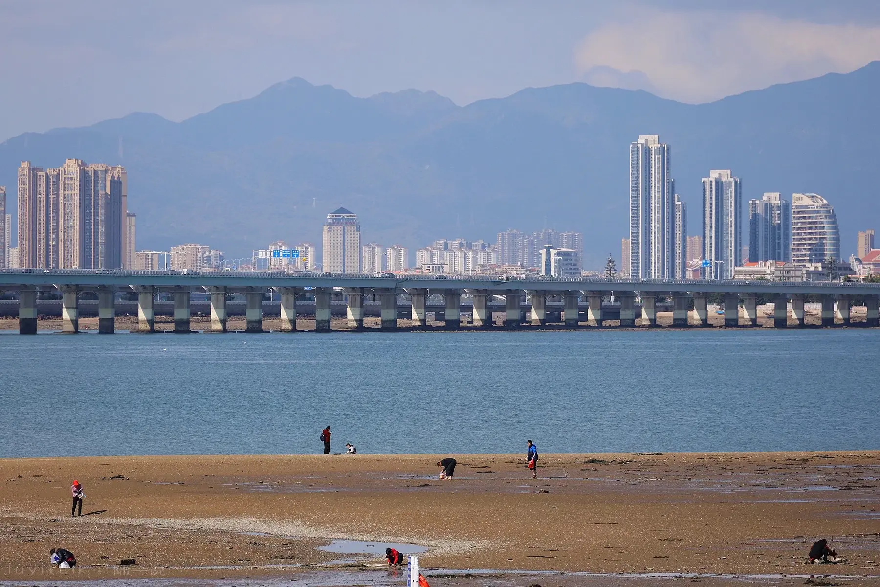 厦门真是个美丽的城市,海岸线随手拍。今日上午骑行随拍,厦门真美! 天气不错 过厦门大桥,集美大桥,翔安大桥 见一些赶海人~