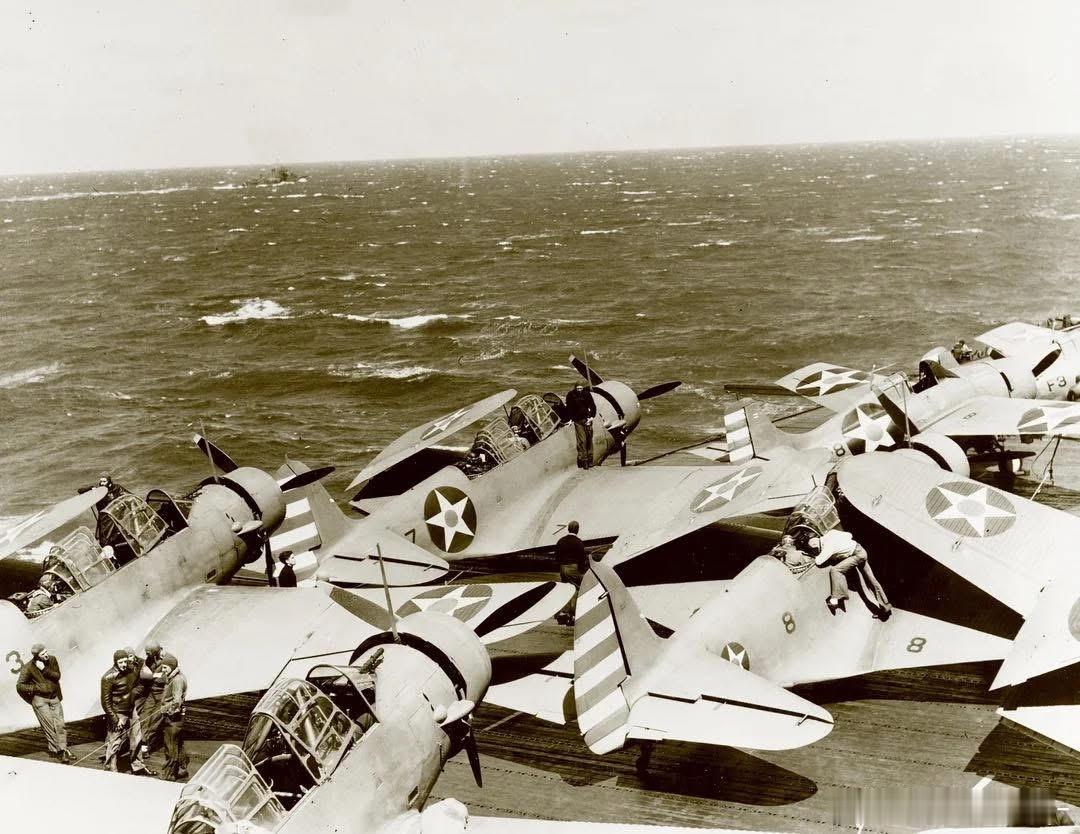 企业号航母上的TBD蹂躏者鱼雷机和F4F3野猫战斗机,摄于1942年初。军事历史全触达中外舰闻每天认识一件兵器