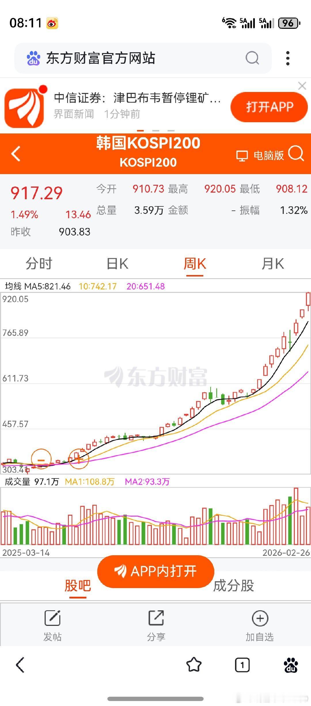 一分为二,辩证看待。新一轮“三线平行比天高”,正在演绎中。但,个人感觉,韩国股市