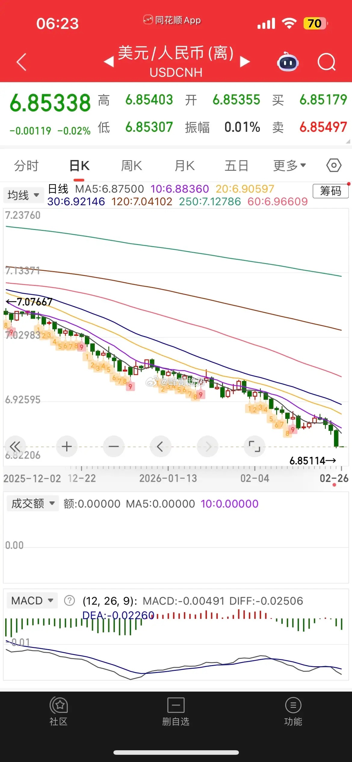 纳指涨1.26%一觉醒来,人民币再创新高,已经升破6.86,黄金微涨,白银大涨超2%,一举突破90美元,中概股涨跌不一,纳指金龙指数跌0.47%,阿里、京东、拼多多微涨,百度跌0.7%,哔哩跌0.9%,小鹏大跌近3%,阿特斯太阳能大跌超5%,富时A50涨0.49%,恒生主连涨0.71%,这样看今天大A还会继续冲高,压力位在4170附近,而港股今天估计又得高开近1个点,就怕又高开低走。