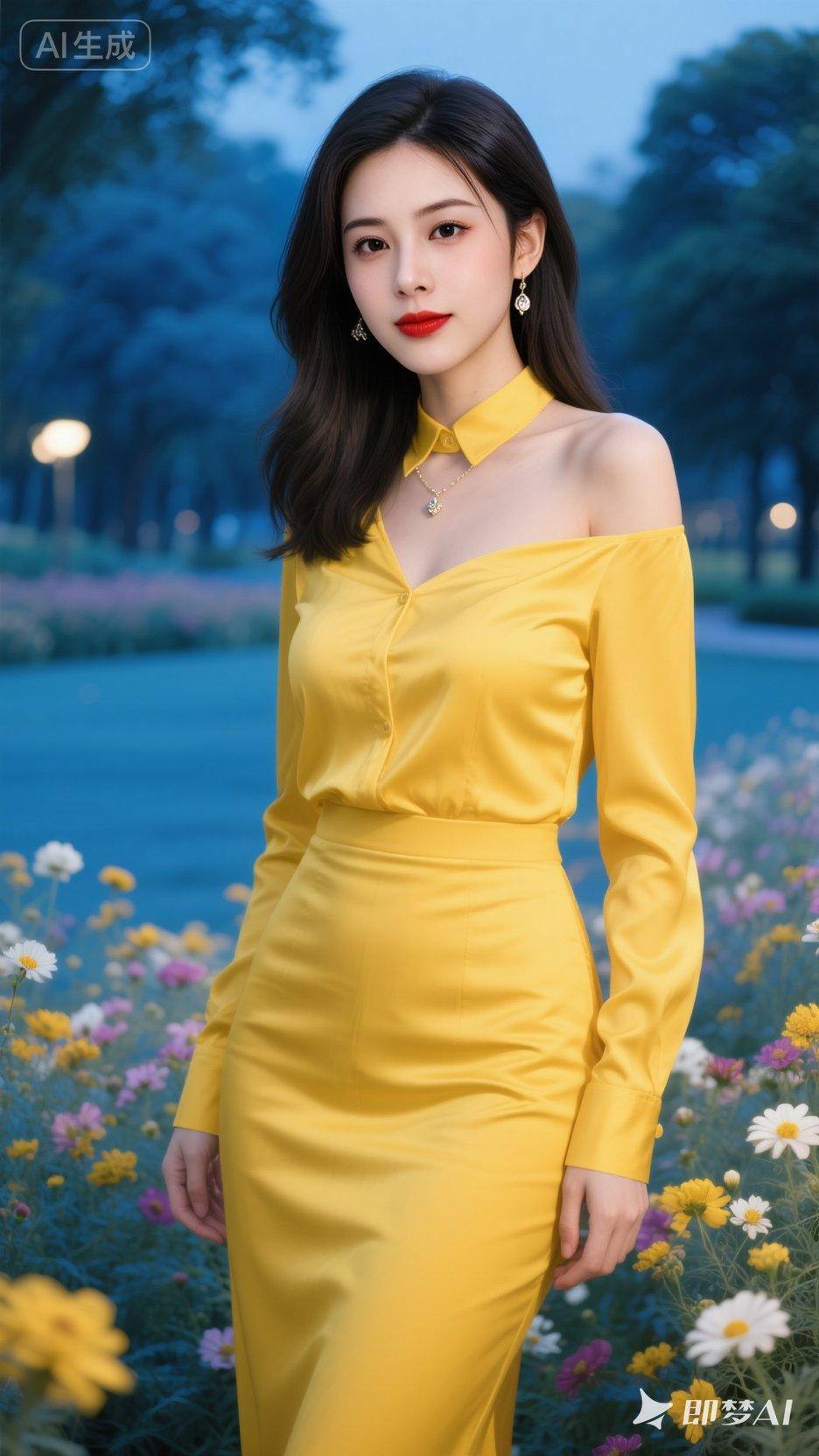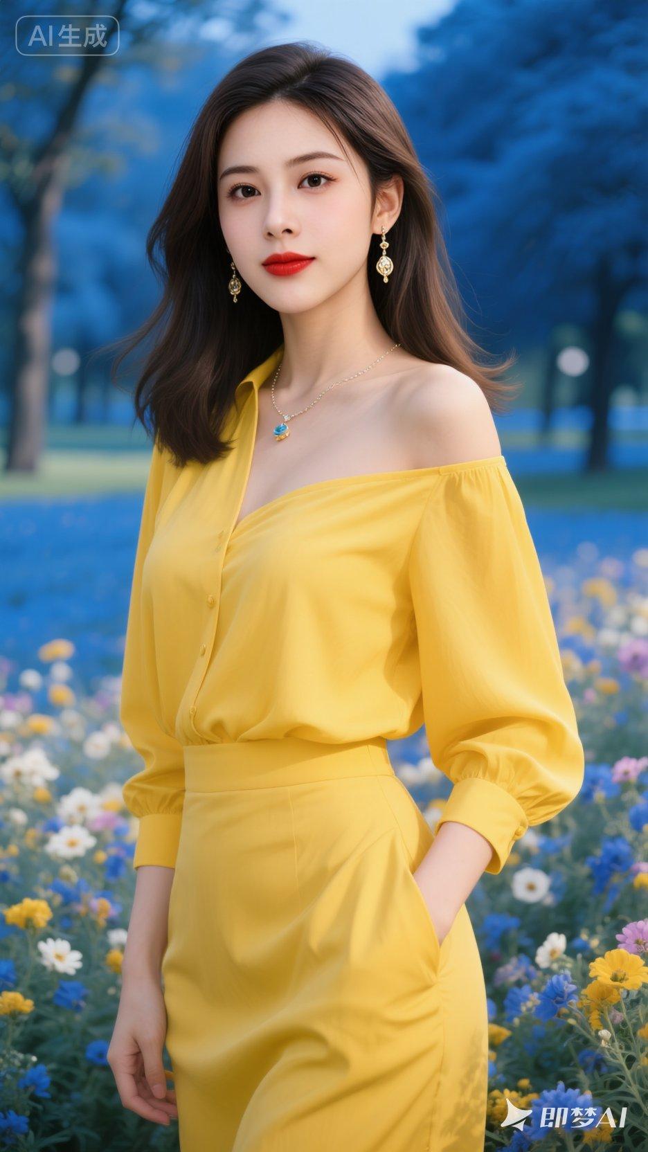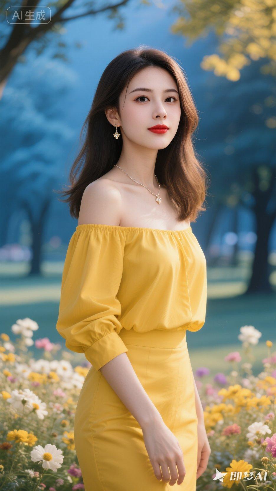 蓝天白云,大海上,一位都市女孩,长发,漂亮,大眼睛双眼皮,眼含笑意,大方,得体,