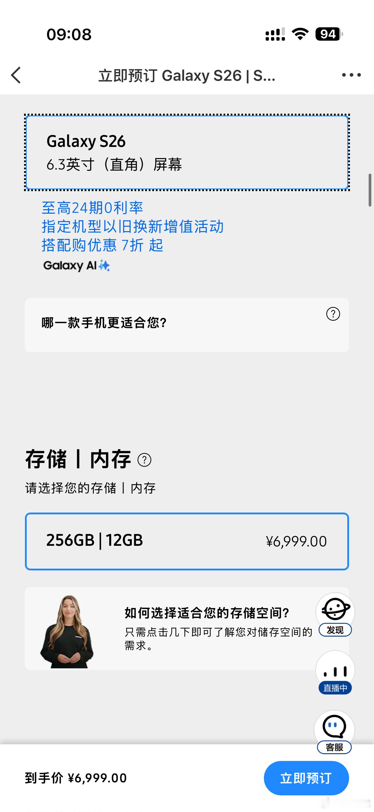 三星GalaxyS26系列价格三星Galaxy S26:12+256GB 6999元,只有这一个版本