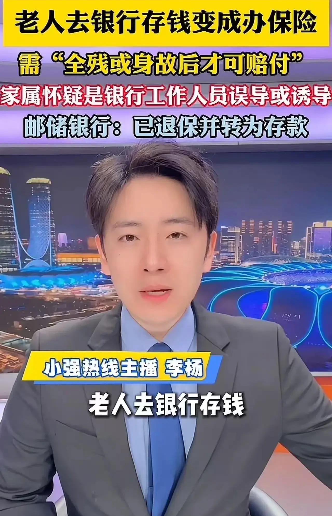 “专坑老年人!”湖北,68岁老太去银行存1万元钱,工作人员告诉她有一个利息高的业务,存上送豆油,5年期满,就能把钱取出来,老太在工作人员的指导下,办理了该业务,3年后,老太又先后存进去3万元,老太太的儿子知道了,他发现银行为母亲办理的根本不是存款,而是保险,儿子找来媒体帮自己讨要说法,银行怕了! 事情发生在湖北天门,68岁的陈奶奶一辈子省吃俭用,攒下了一点养老钱,心里想着把钱存到银行,办个定期,既安全又能赚点利息,以后养老也能多一份保障,2024年1月5日,她揣着自己攒了许久的1万块现金,走进了镇上的邮政储蓄银行,满心欢喜地想办理定期存款业务。 可她万万没想到,这一进去就掉进了工作人员精心设计的圈套里。银行里的工作人员,态度热情得有些过分,主动给她端茶倒水,嘘寒问暖,一番寒暄之后就话锋一转,开始向她推荐一款“特殊业务”。 工作人员告诉她,这款业务比普通的定期存款利息高不少,而且只要办理,当场就送一桶豆油,等到五年期满,拿着凭证就能顺利把钱取出来,稳赚不赔。 陈奶奶一听,心里立马就动心了。老年人大多都想着能多赚点利息,何况还有免费的豆油可以拿,更是觉得划算,再加上她一直信任银行,觉得柜台里的工作人员都是靠谱的,不会骗自己,于是就放下了戒心,在工作人员的一步步指导下,稀里糊涂地签了字,办完手续后,拎着那桶赠送的豆油,开开心心地回了家。 这件事陈奶奶一直没跟家里人提起,她觉得自己办了件划算的事,既存了钱又得了礼品,等着五年后拿高利息就好,不想让家里人多操心,可她不知道这份看似“划算”的业务,背后藏着的是让她付出三年焦虑的陷阱。 转眼到了2025年,陈奶奶因为家里急需用钱,就想着去银行把这笔钱取出来,不再继续办理这项业务,可当她赶到银行,跟工作人员说明想法后,却被一句话堵了回来,工作人员告诉她,现在退保会亏很多钱,本金都保不住。陈奶奶心疼自己攒下的养老钱,舍不得亏损,只好咬牙又缴了1万块,继续办理这项业务。 到了2026年,同样的剧情再次上演,陈奶奶又一次被工作人员劝说,想着不能白白亏损,只能又拿出1万块缴了进去,短短三年时间,陈奶奶前前后后一共投入了3万块,这些钱,全是她省吃俭用,从平时的生活费里一点点抠出来的养老钱,是她晚年生活的依靠。 直到今年1月陈奶奶在网上刷到了很多老年人被金融骗局欺骗的新闻,越看心里越不对劲,想起自己在银行办理的那项“高息业务”,越想越焦虑整宿整宿睡不着觉,实在扛不住了,才把这件事一五一十地告诉了自己的儿子陈先生。 陈先生听完母亲的话,心里咯噔一下赶紧让母亲把当时办理业务的“取款凭证”拍给自己看。可当他看到凭证的那一刻,脑袋嗡的一声,彻底懵了,那根本不是什么定期存单,分明是一份终身寿险保单,和存款没有一点关系。 陈先生仔细查看保单,发现上面的条款十分苛刻,缴费期长达五年,而赔付条件更是离谱,只有被保险人全残或者身故才能拿到钱,换句话说陈奶奶想从里面取出自己的3万块养老钱,要么变成全残要么去世,这对一位68岁的老人来说,简直是天方夜谭。 更让陈先生生气的是,保单上竟然写着陈奶奶年收入8万、家庭年收入10万,可他母亲一辈子没有固定收入,这些数字全是凭空捏造的,根本不符合实际情况,而且保单上的签名字迹工整流畅,可他母亲平时很少写字,笔迹根本不是这样,显然是有人代签或者诱导签字。 他还专门算了一笔账,就算母亲老老实实缴满五年,投入5万块本金,到时候退保也只能拿到950元的利息,所谓的“高息业务”,不过是工作人员用来忽悠老人的空话,全是骗局。 怒火中烧的陈先生,立马带着母亲赶到银行讨说法,可银行方面态度十分强硬,声称办理业务时,双录已经告知过陈奶奶这是保险,签名也没有问题,整个流程都是合规的,拒不承认存在误导销售的行为,也不肯退还保费。 面对银行的强硬态度,陈先生实在没有办法,只能求助媒体,希望通过媒体的力量,为母亲讨回公道,让人没想到的是,神奇的事情发生了,记者一介入之前还态度强硬的银行,立马就软了下来,再也没有了之前的底气。 2月6日银行很快就为陈奶奶办妥了全额退保手续,之前缴纳的3万块保费,全部转成了陈奶奶名下的定期存款,总算是把钱追了回来。 家里有老人的一定要多提个醒,银行柜台前那些看似“划算”的好事,未必真的是好事,遇到有人推荐“高息业务”,一定要先问清楚,是存款还是保险,别让一桶豆油,换走老人几年的安心,别让辛苦攒下的养老钱,打了水漂。