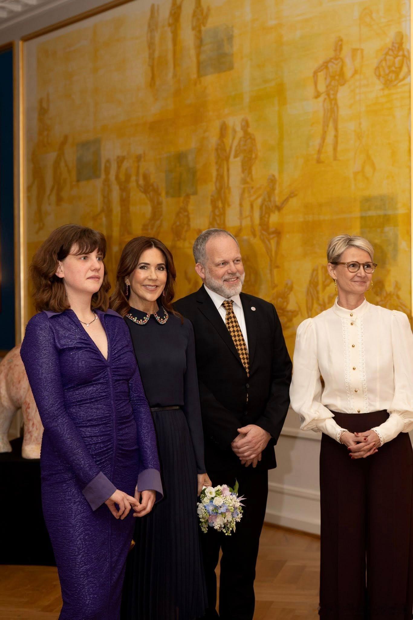 新闻 2026.2.25 丹麦王后玛丽出席丹麦心理健康协会丹麦精神健康基金会成立30周年庆典并参观基金会举办的“房间里的大象”主题展览,大玛丽的旧黑色连衣裙来自Valentino。