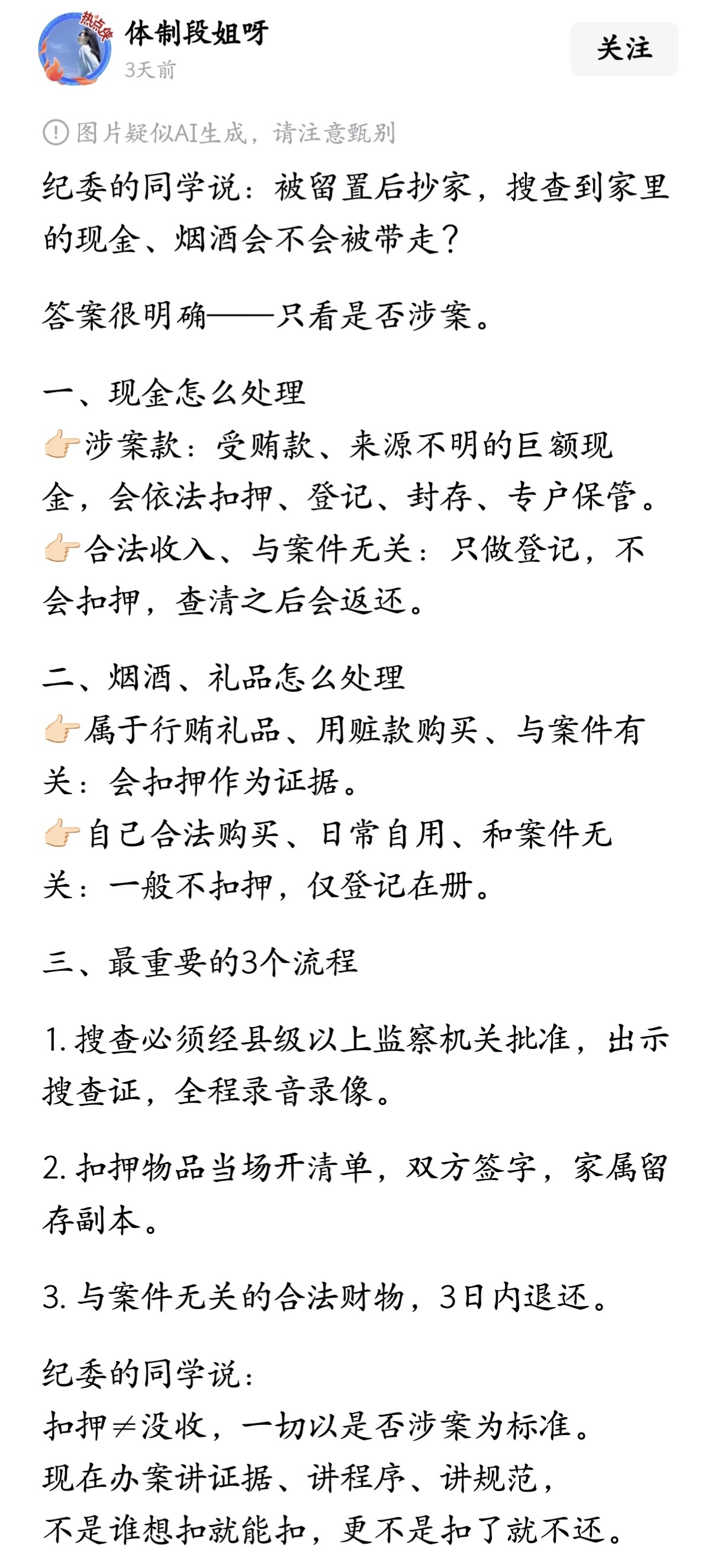 纪委的同学说:被留置后抄家,搜查到家里的现金、烟酒会不会被带走?