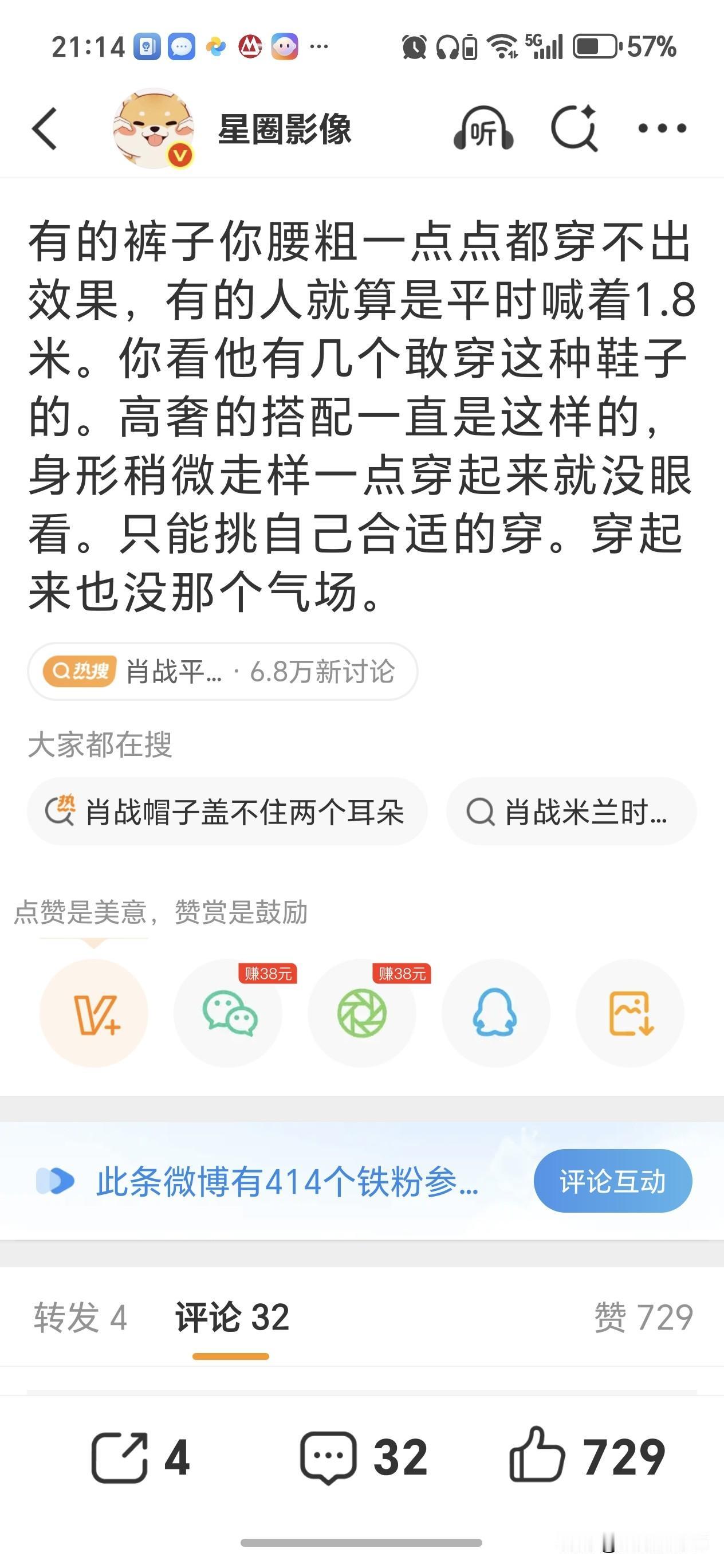 Gucci能请到肖战当全球代言人真是幸运,肖战出发造型一出,从大衣,到帽子,到平底鞋,到120的超长裤都讨论上了热搜,还没下飞机✈️,肖战就登上世界趋势高位,顺带把外国保镖都讨论上了热搜,这种热度和讨论度,也就是肖战了[赞]全世界的目光都在关注着世界巨星闪耀米兰