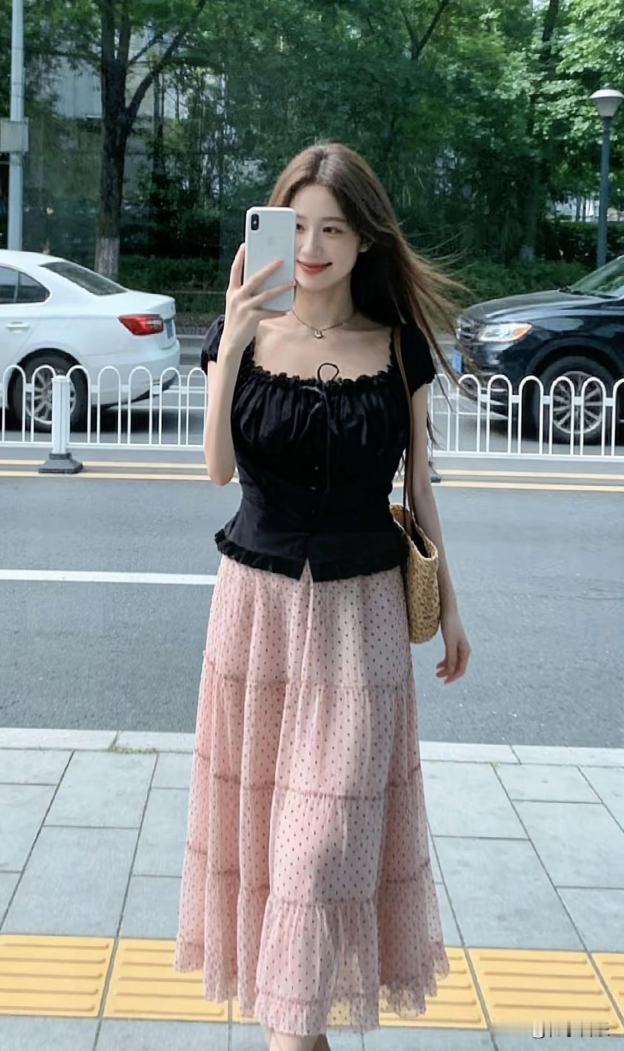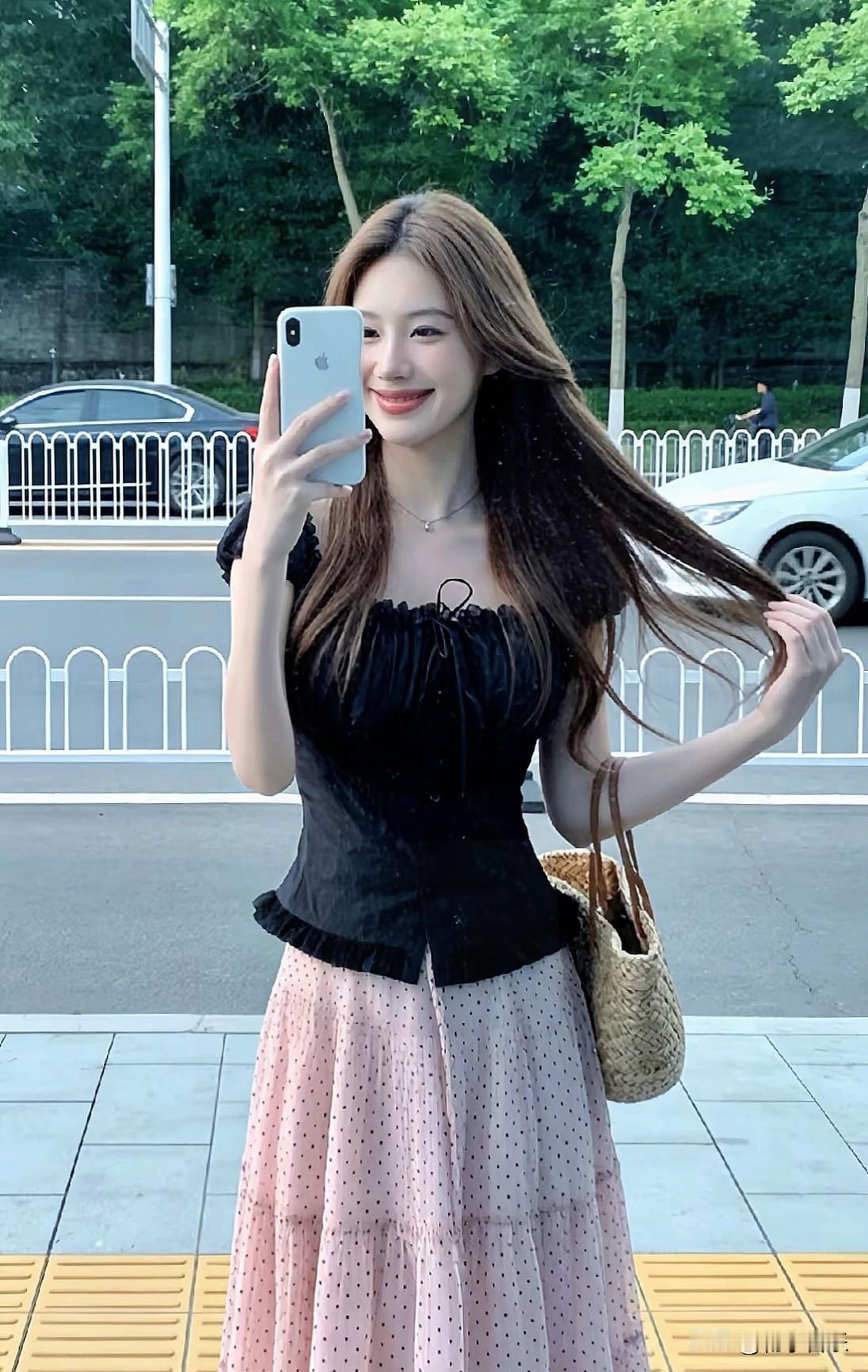 甜美少女风穿搭,黑色蕾丝上衣搭配粉色波点裙,元气满满!💕👗👗分享一张随手拍 随手拍的最美丽的照片 分享手机相册里的美拍图片 今日分享随手拍照片 手机随手拍 记录美好点滴 分享你相册里的最新一张照片 手机随手拍原创图片 分享甜美小姐姐随手拍