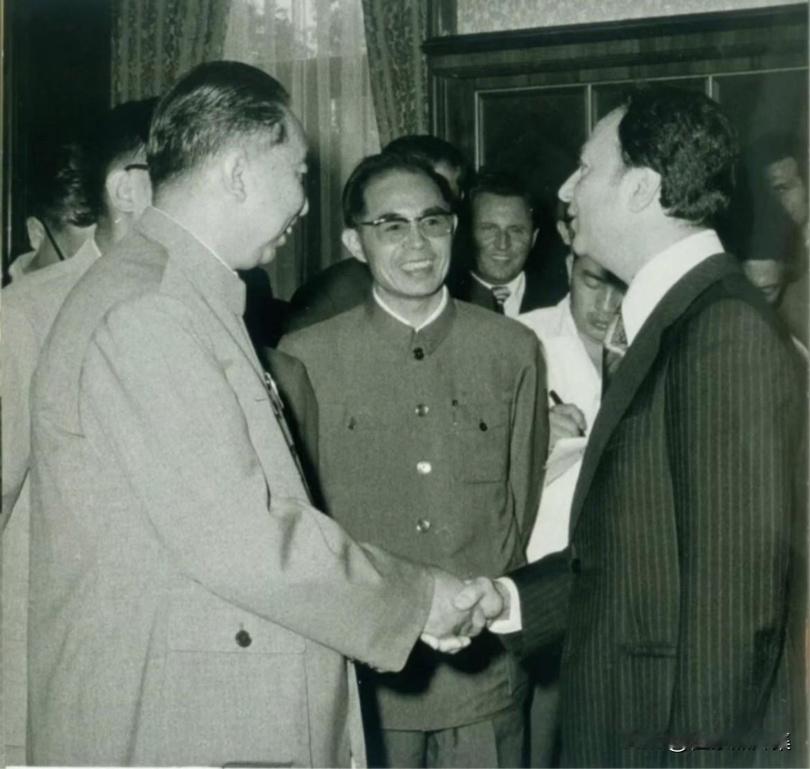 1978年,华国锋同志访问罗马尼亚,与罗马尼亚领导人握手。照片中间戴眼镜的正是中国驻罗马尼亚大使李庭荃。他于1973年出任驻罗大使,是此次高访的关键接待者和联络人。李庭荃是资深外交官,早年参加革命,1965年从工业部门调入外交部,具有丰富的对东欧事务经验。