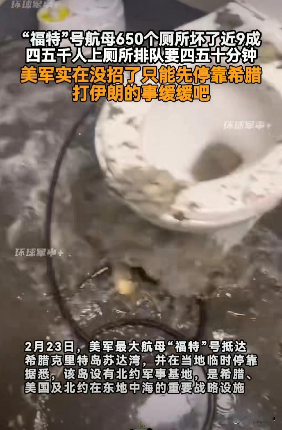 130亿航母,被厕所干趴了!福特号彻底翻车,笑不活了 造价130亿美元的福特号,号称全球最强核动力航母,最近在中东彻底露馅。 本想去威慑伊朗,结果650个厕所坏了90%,4600人排队上厕所,最长要等50分钟。 舱内污水横流,臭气熏天,被迫紧急停靠希腊,北约还得给它送移动厕所救急。 电磁弹射天天故障,修了十几年没修好;现在连排污系统都全线崩盘,维修人员一天干19小时,越修越坏。 花最多的钱,挨最狠的骂。 服役快10年,部署8个月,战斗力没看见,毛病一箩筐。 号称海上霸主,结果成了全球最贵港口吉祥物。 事实很扎心: 再华丽的面子,撑不起里子的漏洞。 真正的强大,从来不是堆钱堆出来的。 国际 军事