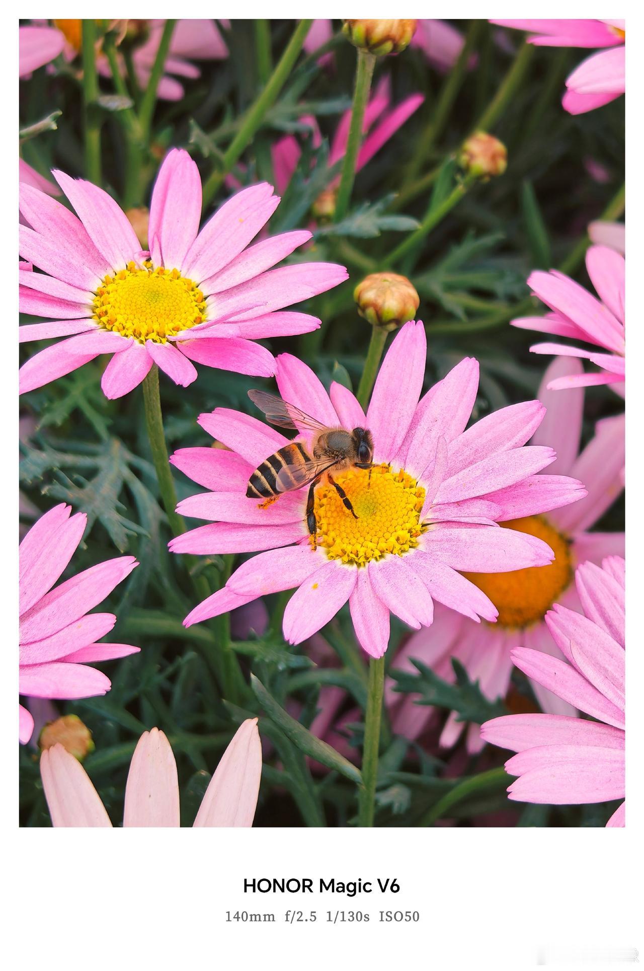 虽然荣耀Magic V6还没有正式发布,而荣耀影像则第一时间,分享了这款机型拍摄的已一组花卉照片,记录生活中的美好,随手一拍就能够实现,通过照片上展现的,不同花朵的色彩外形,蝴蝶和蜜蜂细节感都蛮清晰,虚化的背景也蛮自然,影像能力搭配端侧AI,整体效果堪比影像旗舰 畅聊数码新品 数码资讯