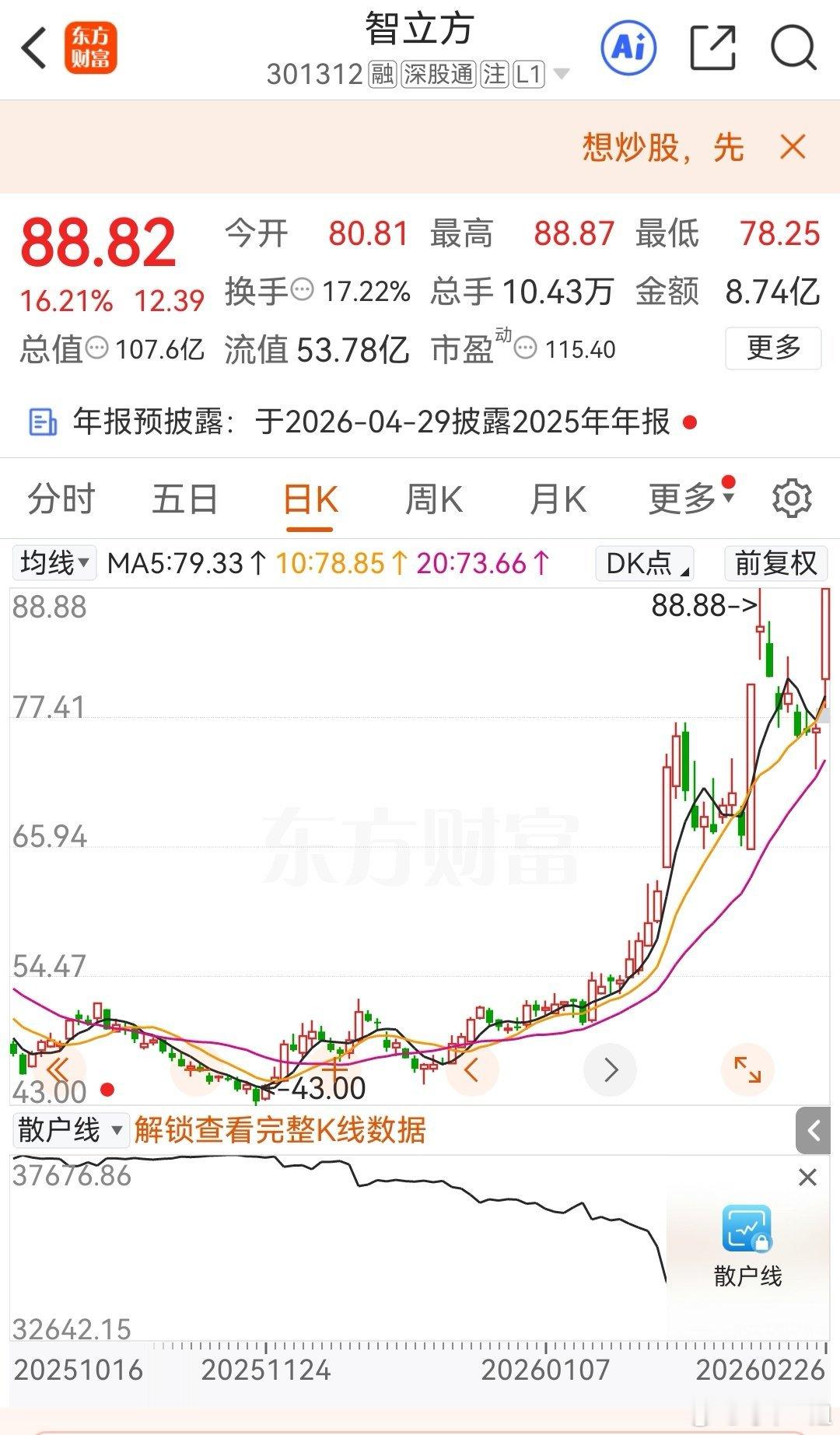 早盘分享的智立方,猛涨!!
