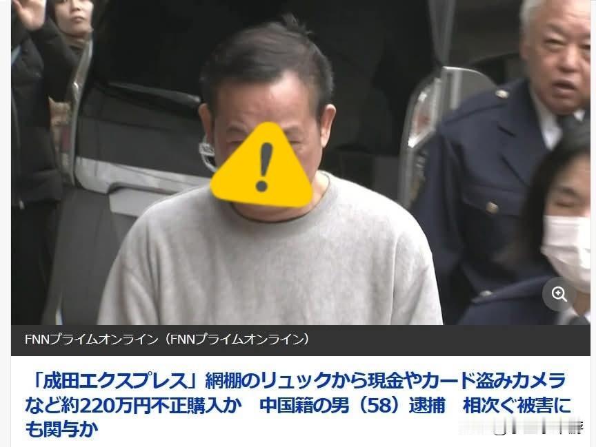 一名疑似针对访日外国游客多次实施盗窃的中国籍男子已被逮捕。 嫌疑人龙用均(58岁)涉嫌于1月,在从成田机场开往东京站的“成田特快(Narita Express)”列车内,从行李架上一名40多岁中国籍男性的背包中,偷走现金10万日元及信用卡,并涉嫌使用该卡非法购买了价值约220万日元的相机等物品。 据悉,龙姓嫌疑人否认指控,表示“我没有做那种事”。 自2025年起,成田特快接连发生外国游客行李被盗的受害案件,警视厅认为该男子有重大嫌疑,目前正在展开进一步调查。
