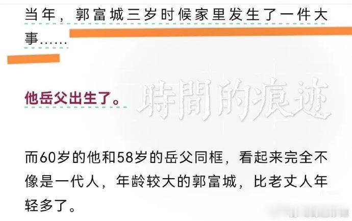 郭富城三岁的时候家里发生了一件大事郭富城三岁时岳父出生了 郭富城三岁时岳父刚出生,意味着岳父比女婿小三岁,这家庭地位谁高谁低还真不好说!