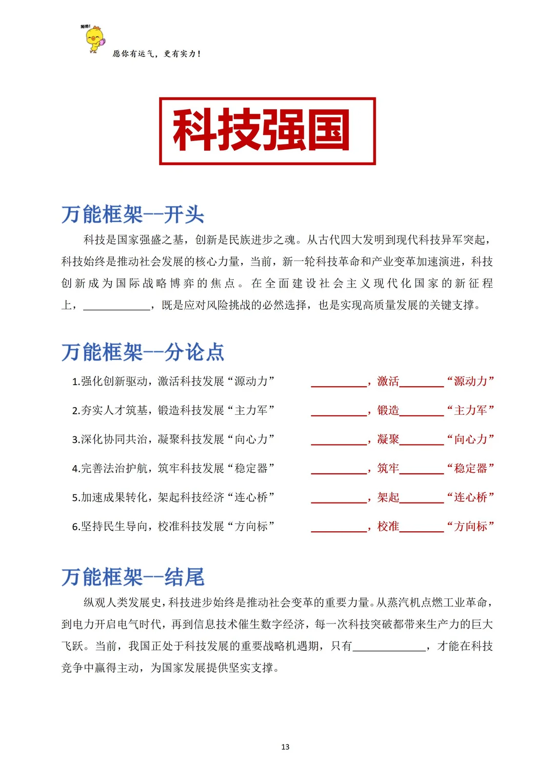 找到万能模板中的分论点和标题,分别挑选3-5个优化框架,给考官留下一个好印象。
