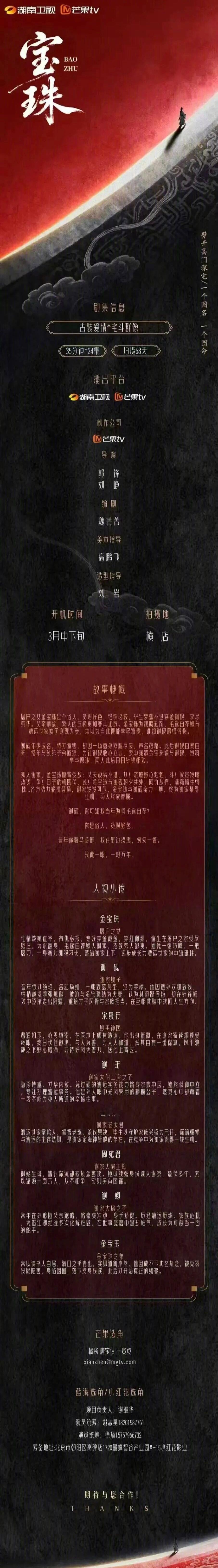 代露娃、常华森《宝珠》发布组讯,导演郭锋、刘峥,编剧魏菁菁,预计3月中下旬开机