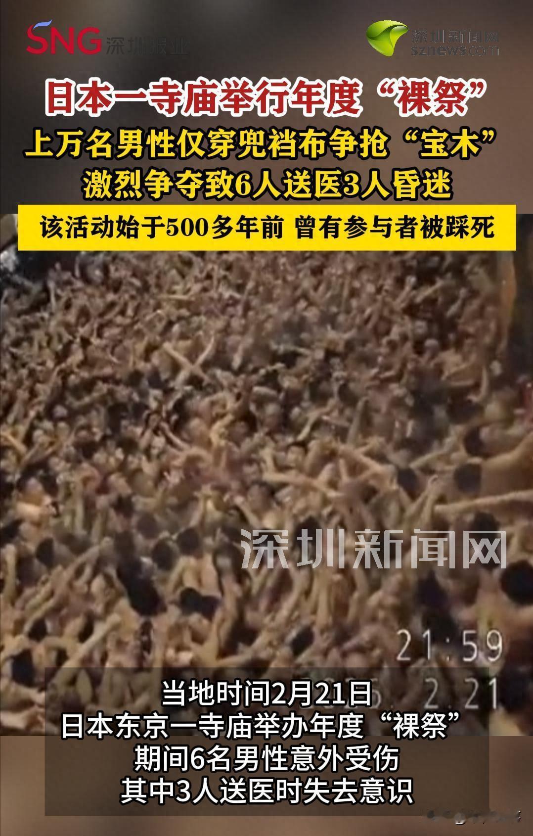 日本真是一个让人不理解的国家啊! 不以为耻,反以为荣。让人大跌眼镜,甚至感到生理不适。一万个大老爷们儿,大半夜脱得只剩条兜裆布,在黑灯瞎火里疯狂摩擦、挤压。 这种事儿发生在2026年的文明社会,你敢信?大家怎么看,一起评论区唠唠! 咱们先来聊聊这幅画面的冲击感,2026年了,人类都已经开始聊AI深度学习、太空旅行了,可在日本冈山县的西大寺,一万个老爷们儿竟然在玩一种极度原始、甚至让人想打报警电话的“集体狂欢”。 二月的寒风跟小刀子似的,气温只有5度,这帮人就穿一条白花花的兜裆布,光着脊梁在冷风里蹦跶,你以为这是健身?不,这是他们所谓的“神圣传统”——裸祭,说白了,就是一群人脱光了在寺庙里“叠罗汉”。 这过程听起来就让人窒息,在正式开始前,这一万号人得先在冰水里洗澡,美其名曰“净化”,实际上就是把身体冻到麻木,好迎接接下来的“肉搏”,随后,这上万具白花花的躯体被强行塞进了一个狭窄的正殿里。 咱们算一笔账,一万人挤在一起,人均占地面积连半个平米都不到,那是种什么感觉?就是你前后左右全是湿漉漉、热腾腾的肉体,汗臭味、唾沫星子在空气里发酵,每个人都像沙丁鱼罐头里的一条鱼,脚后跟都不一定能着地。 真正的“变态时刻”发生在晚上22点,随着主持僧侣的一声号令,大殿里的灯“啪”地全灭了,在伸手不见五指的黑暗中,两根20厘米长的小木棍(也就是所谓的宝木)被从二楼扔了下来。 那一瞬间,一万个男人彻底疯了,他们看不见木棍在哪,只知道往那个方向扑、往别人头上爬、往人缝里钻。 这种在黑暗中的疯狂摩擦和挤压,已经完全脱离了正常人的理解范围,黑暗中,无数双手在摸索,无数个身体在冲撞,你踩着我的肩膀,我拽着你的兜裆布,大家在一种近乎癫狂的状态下互相踩踏。 有人在哀嚎,有人在咆哮,但在这种万人规模的“肉体漩涡”里,你的声音根本传不出去,这种场面,除了“淫乱变态”,真的很难找到第二个词来形容。 结果呢?福气没见着,救护车先到了,短短二十分钟的“抢木头”大战,直接导致6个中年大叔被抬了出去,其中有3个人,被抬出来的时候已经是进气多、出气少,当场陷入重度昏迷。 这三位都是四十来岁的年纪,本该是家里的顶梁柱,结果为了抢一根破木头,硬生生把自己抢进了ICU,就让人纳闷了,这抢的是福气还是催命符? 更离谱的是,这种闹剧,居然还是日本的国家级“重要民俗文化遗产”,主办方的逻辑简直离谱:抢到木头就是“福男”,能保全家平安,可现实是,你抢到了还得立马还给寺庙,换一个老和尚在你头上摸两下。 为了这么个活动,这帮人竟然能无视1987年和2007年已经发生过的踩踏致死惨剧,死过人又怎样?明年接着办! 网友们看后纷纷吐槽,这哪是祈福,这是集体自残吧?一万个男的黑灯瞎火挤在一起,这画面生理性不适。 确实,这种对生命的极度漠视和对畸形传统的病态执着,真的让人看清了某些文化内核里的荒诞。 所谓的“传统”,如果非要建立在伤害生命、刷新文明底线的野蛮碰撞上,那它就不叫文化,叫陋习,2026年的阳光照在这些白花花的身体上,映出的不是什么神圣的光芒,而是某种文明尚未开化的、令人不齿的变态执念。 说到底,福气是靠双手打拼出来的,不是靠穿条兜裆布在黑暗里跟一万人肉搏蹭出来的,希望那些还在昏迷中的大叔能醒过来,也希望这种把野蛮当荣耀、把变态当传统的闹剧,能早点退出文明社会的舞台。 毕竟,人类文明进化了几千年,真的不是为了看这一万个老爷们儿在大半夜里“叠罗汉”玩命的,这种事儿,必须曝光,必须唾弃! 最后也想问问那些组织者,看着那几个重伤昏迷的中年人,你们手里的“宝木”还觉得神圣吗?你们所谓的“传统”,在鲜血和生命面前,到底值几个钱?别再拿着“文化遗产”当挡箭牌了,这种不以为耻反以为荣的劲头,真的让全世界都看清了什么叫真正的“生理不适”。 对此,大家有什么想说的呢?欢迎在评论区踊跃留言!麻烦看官老爷们阅读后点赞关注,谢谢! (个人观点,理性观看)