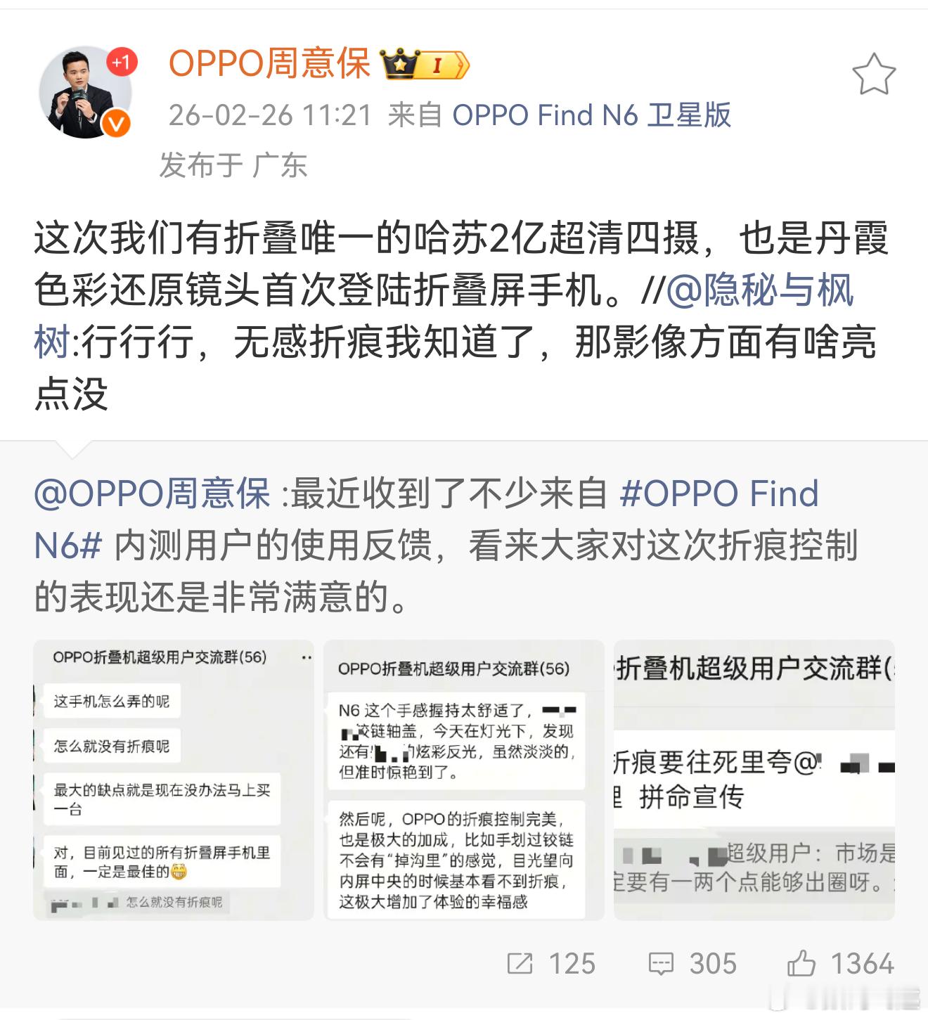 OPPO Find N6也马上来了,这次好像很强呀,折痕控制非常好,而且影像方面也有跃升,加入了哈苏2亿超清四摄,还有丹霞色彩还原镜头,有点东西,期待一下