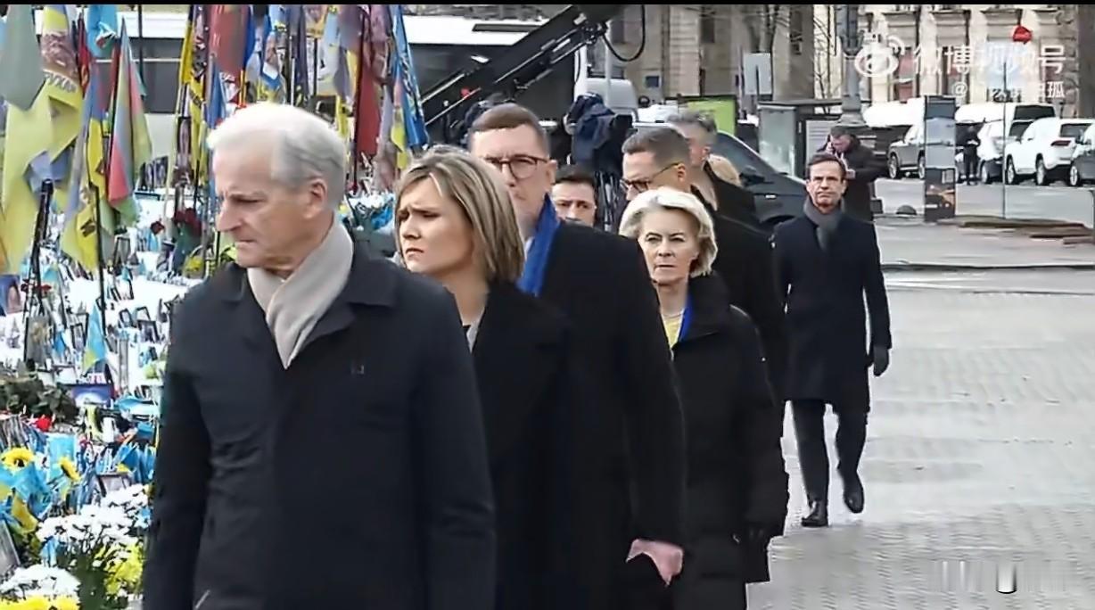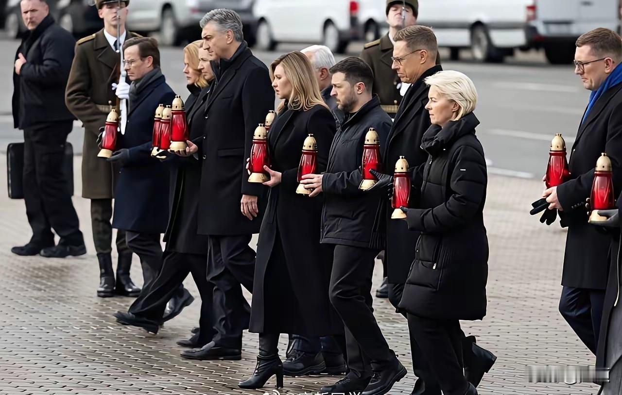 2月24日,俄乌冲突爆发四周年之际,乌克兰总统泽连斯基与第一夫人叶莲娜·泽连斯卡娅,在基辅独立广场的人民纪念碑前,接待了欧盟委员会主席冯德莱恩、瑞典首相克里斯特松、克罗地亚总理普连科维奇、芬兰总统斯图布、立陶宛总统瑙塞达等多国政要。 各国领导人手持红色纪念灯,向战争中牺牲的乌克兰士兵致敬,悼念逝者。在美俄开启停火谈判、外界对欧洲援乌决心存疑的背景下,此次集体到访被视为欧洲对乌支持的重要表态。冯德莱恩强调,欧盟将“坚定不移地与乌克兰站在一起”,继续提供财政与军事支持,以稳定战局、推进战后重建。 这一行动也被解读为欧洲在俄乌和谈进程中,试图巩固自身立场、避免被边缘化的关键一步。