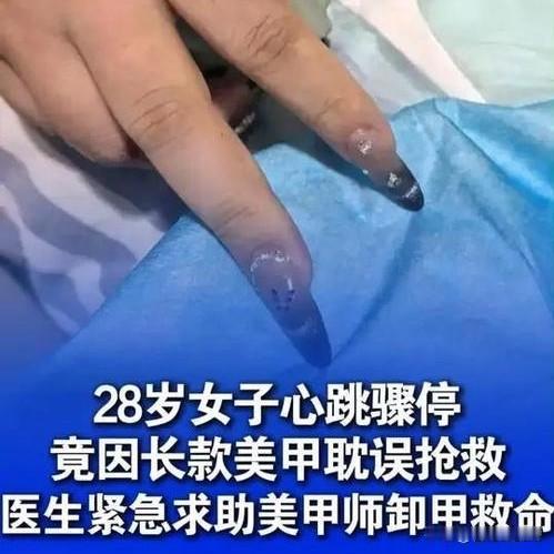 28岁姑娘心跳骤停,却因这个被卡在鬼门关!医生:第一次见这种情况 说个真事儿,听得我后背发凉。湖南有个28岁的姑娘小丽,年纪轻轻的,突然就因为暴发性心肌炎心脏骤停了!人送进抢救室,可以说是已经在鬼门关边上晃悠了。可就在医生准备上仪器监测血氧、打算把她拉回来的时候,发现一个特别致命的问题——她的手指没!法!测! 当时的情况特别紧急,医生说血压都掉到50多了,必须马上通过指脉氧仪看血氧含量来调整方案。结果你们猜怎么着?那个小夹子夹在她手上,怎么都不出数,换一根手指也不行,机器一直报错!把一屋子抢救的医护都急得满头大汗。后来仔细一排查,问题就出在她那双精致的、刚做的长款美甲上。那个甲油胶太厚,还贴了甲片,直接把仪器的光线给挡住了,相当于给手指穿了件“铁布衫”,仪器那点光根本穿不透,瞬间就成了抢救路上的“拦路虎”。 那怎么办?总不能因为这美甲就把人耽误了吧?医护人员的操作更绝,他们自己试着卸,但那美甲太结实了弄不掉。最后没办法,医院紧急联系了一个专业美甲师,带着工具火急火燎地冲进抢救室!美甲师也是头一回在ICU里干活,穿着无菌服,在医生抢救的同时,跪在那儿小心翼翼地给病人卸甲。卸完之后再把仪器夹上去,嘀的一声,数据立马就出来了,这才为后续治疗抢通了道路。 很多姐妹看到这儿肯定吓一跳,做个美甲咋还成玩命了?我跟你们说,真不是吓唬人。咱们去医院测的那个血氧仪,是靠发射红光和红外光穿透指甲去感应血管里血液的含氧量。你指甲上那些厚厚的胶、钻、还有深色的甲油,就像给指甲盖了个黑屋子,光进不去也出不来,仪器可不就“瞎”了吗? 尤其是在这种生死攸关的抢救时刻,医生看不到血氧,就没法判断你是不是缺氧,该不该上呼吸机。耽误那一分钟,后果可能都不敢想。 而且不光是紧急抢救,医生说长期做那种特别厚、特别长的美甲,指甲缝里容易藏细菌,引发甲沟炎都是轻的。要是再碰到不合格的美甲材料,还容易导致指甲受损、过敏,甚至因为消毒不彻底感染一些病毒。你为了美,结果把指甲的保护层磨薄了,其实是给身体开了个后门。 现在这姑娘命是捡回来了,但这事儿真的得给所有爱美的姐妹提个醒。咱们追求美一点错没有,但真得到医院这种地方,平时引以为傲的“精致”,差点成了要命的“累赘”。有医生甚至开玩笑建议,大家以后做美甲,能不能专门留出来一个手指头“素颜”,就当是咱们关键时刻的“救命指”? 看完这个事儿,你心里膈应不?你或者你身边的朋友,能为了安全舍弃这手上的“长指甲”吗?咱们评论区聊聊,救一个是一个,赶紧转发给那个最爱做美甲的闺蜜看看!