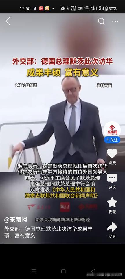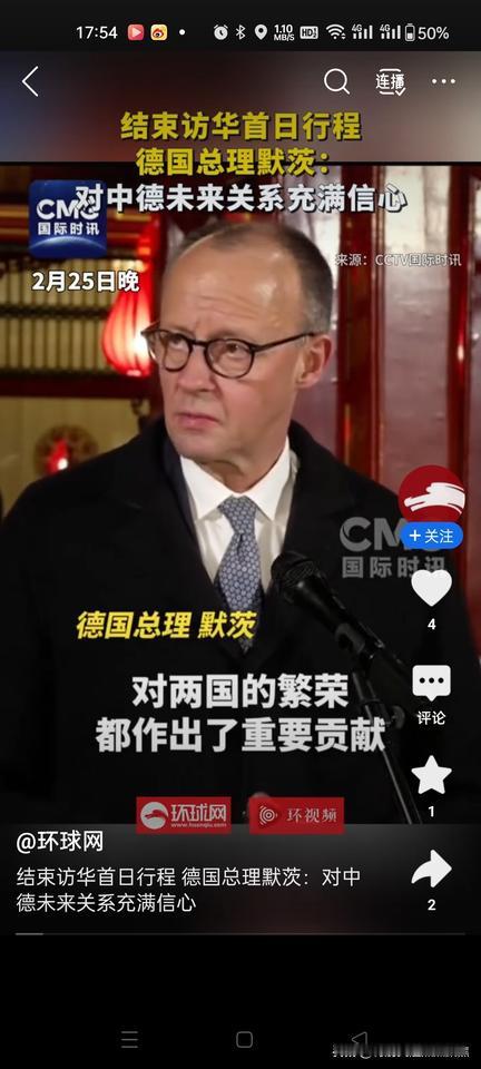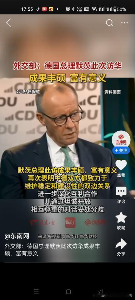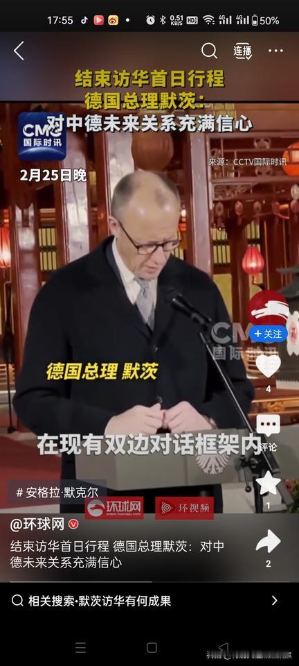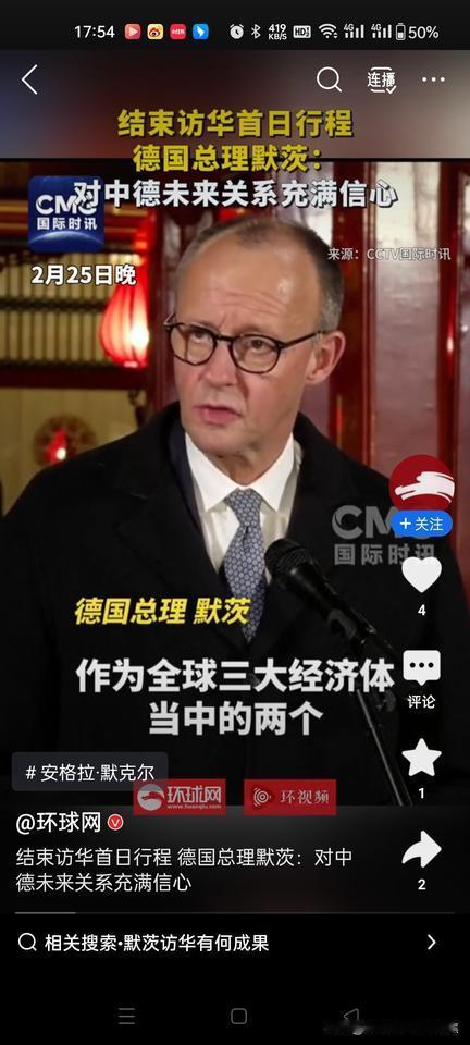 默茨:中德“世界第二和第三大经济体必须合作,谁也离不开谁”。他不仅用中文发帖强调“德中经贸合作能释放巨大潜力”,更在会谈中直言“访华首日成果让我信心十足”。 1. 为什么必须合作? * 经济压舱石:2025年,中德贸易额高达2518亿欧元,中国重新成为德国最大贸易伙伴。德国企业在中国投资创下近四年新高,93%的在华德企不愿撤离。 * 全球责任:默茨强调,作为全球三大经济体中的两个,中德合作不仅关乎两国繁荣,更惠及世界,是动荡世界中的稳定器。 2. 合作的新方向 * 绿色转型:双方将加强“十五五”规划与德国发展战略对接,重点在绿色能源、氢能、生物医药等领域深化合作。 * 数字与AI:默茨特意参访了杭州的机器人企业,释放出在人工智能、数字经济等新赛道加强合作的信号。 3. 默茨的“现实主义” 默茨此行展现了务实的“现实主义”外交。他明确表示“对华脱钩是错误的”,德国需要与中国建立“平衡、可靠、公平”的伙伴关系,在确保自身利益的同时加强合作。 默茨这次访华,确实把“信心”和“务实”写在了脸上。他这次来,核心就一句话:德国离不开中国,但德国也要“去风险”。 1. 默茨的“信心”从哪来? 默茨这次访华,带了30多位德国顶级企业高管,阵容豪华。他之所以敢说“充满信心”,是因为德国经济现在真的太需要中国了: * 数据说话:2025年,中国重新成为德国最大贸易伙伴,贸易额高达2518亿欧元。德国对华投资也创了新高,93%的在华德企都表示要继续留在中国,甚至还要追加投资。 * 现实倒逼:德国经济现在面临高能耗、高利率、外需疲软的三重压力,制造业外流风险很大。默茨很清楚,“脱钩”就是“自杀”,只有跟中国合作,才能稳住德国的经济基本盘。 2. 默茨的“现实主义”是什么? 默茨这次提出了一个外交新词叫 “有原则的现实主义”。翻译过来就是:生意照做,但规矩要讲。 * 生意照做:在汽车、化工、新能源这些德国优势领域,要跟中国深度绑定,利用中国的市场和技术。 * 规矩要讲:德国会加强对供应链的审查,尤其是在涉及国家安全的高科技领域,会设置更严格的“红线”,要求“对等”和“公平”。 3. 中德关系的“新航向” 这次访问,双方其实是在给未来几年的关系“定调”: * 从“浪漫”到“清醒”:以前是“你好我好大家好”,现在是“亲兄弟明算账”。双方都承认有分歧,但承诺通过对话解决,而不是对抗。 * 合作新领域:除了传统的汽车和机械,双方重点谈了绿色转型和人工智能。德国看中了中国的绿氢技术和储能方案,中国则看中了德国的工业4.0经验。 总结:默茨的“信心”是建立在巨大的经济利益之上的。中德关系未来会进入一个“高度透明且伴有剧烈摩擦的务实期”,但合作共赢依然是主旋律。默茨对华政策 默茨访华 默茨对华关系 默茨政府 默茨访美 德国对话中国 默尔茨