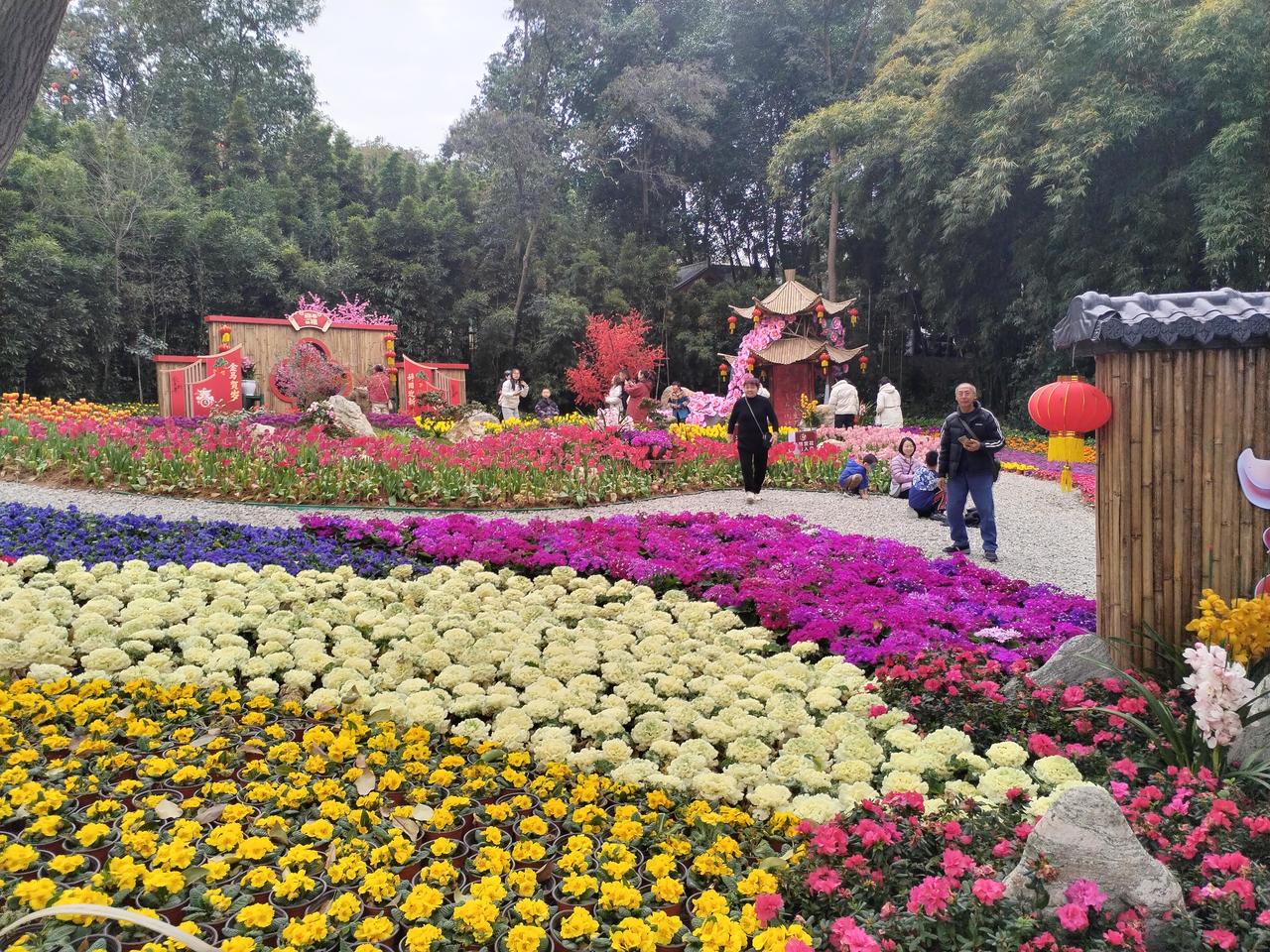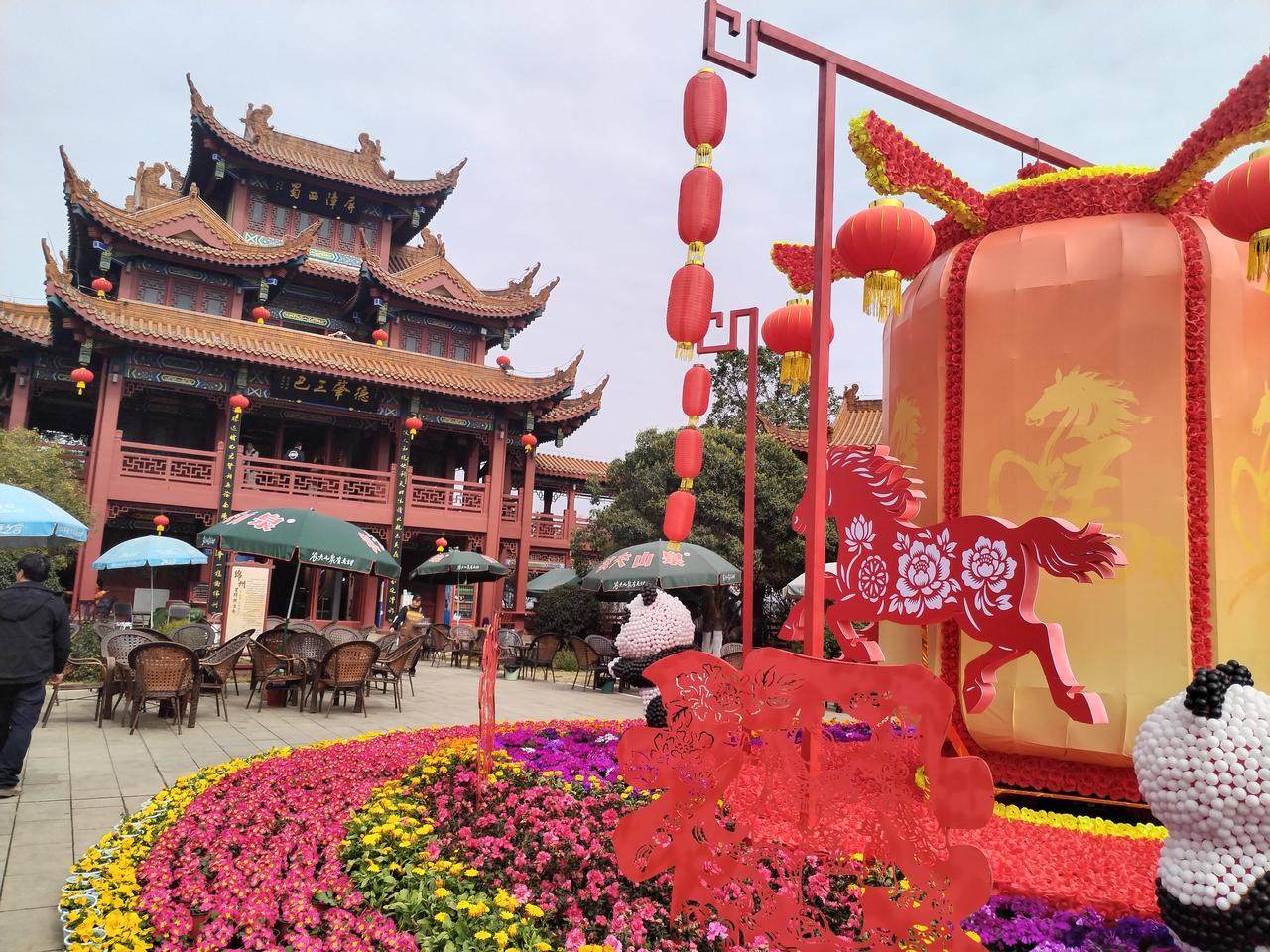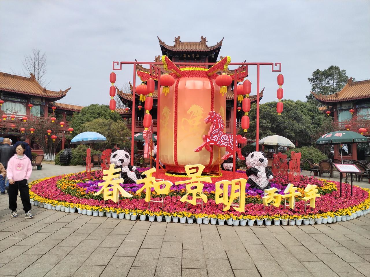马蹄踏烂旧岁遗憾,春风吹来新年期盼。 马年新年伊始,春风和煦,阳光明媚,正月初九和老伴儿第一次逛绵阳富乐山。 马年踏春至,新春万事吉。 走进富乐山公园,門字前一对栩栩如生的雄狮,眨着大眼睛,为你恭候。 欢迎您步入富乐門,万事如意抱走财神。 富乐山,色彩缤纷的鲜花,微笑着向你示意,春天来了。 一串串大红红的宫灯,把富乐山装点着成一抹红色,富丽堂皇。 豫州园,富乐阁,汉皇园,绵阳碑林等景区前都设置精致的鲜花和马年吉祥盆景,引游客们纷纷打卡拍照。 春天来了,古老的富乐山,披上了节日的盛装,敞开温暖的怀抱,迎接四面八方来客。马年吉祥,马到成功!
