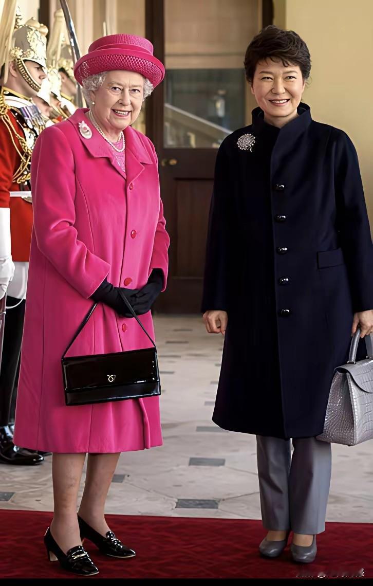 英国女王会见朴槿惠时的情景,现在看来,依然还是那样的有温度,那时候的女王,虽然年事已高,但是穿着打扮是比较精致的,让人能够感受到王室的气派和尊严,朴槿惠也比较年轻,也正是事业的巅峰时刻,这些都成为永恒的一瞬间了,想到这一些,不觉让人唏嘘不已!