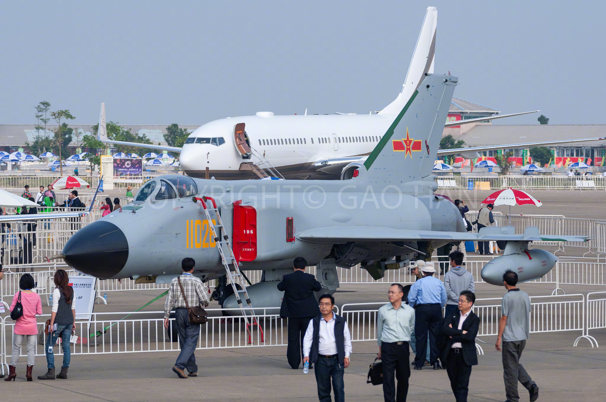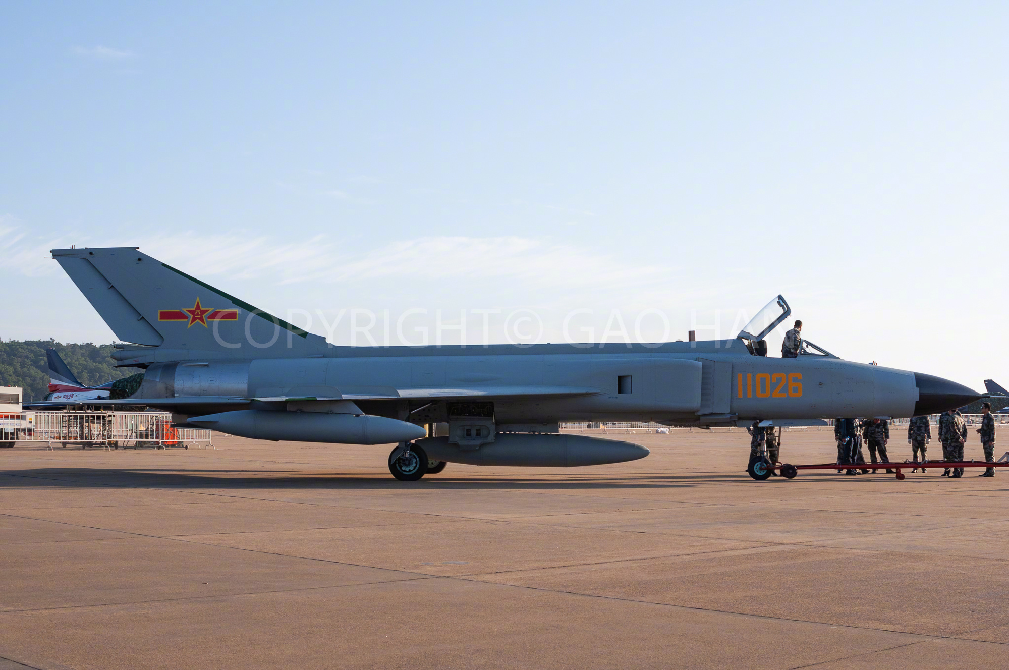 2010年珠海航展上迎来歼-8F战斗机,取消了空中加油管,主翼上有三对翼刀,机身部分细节也与歼-8D不同。