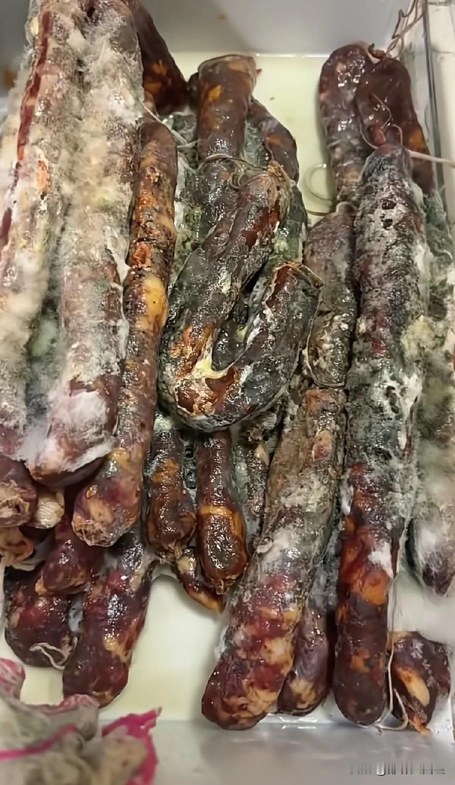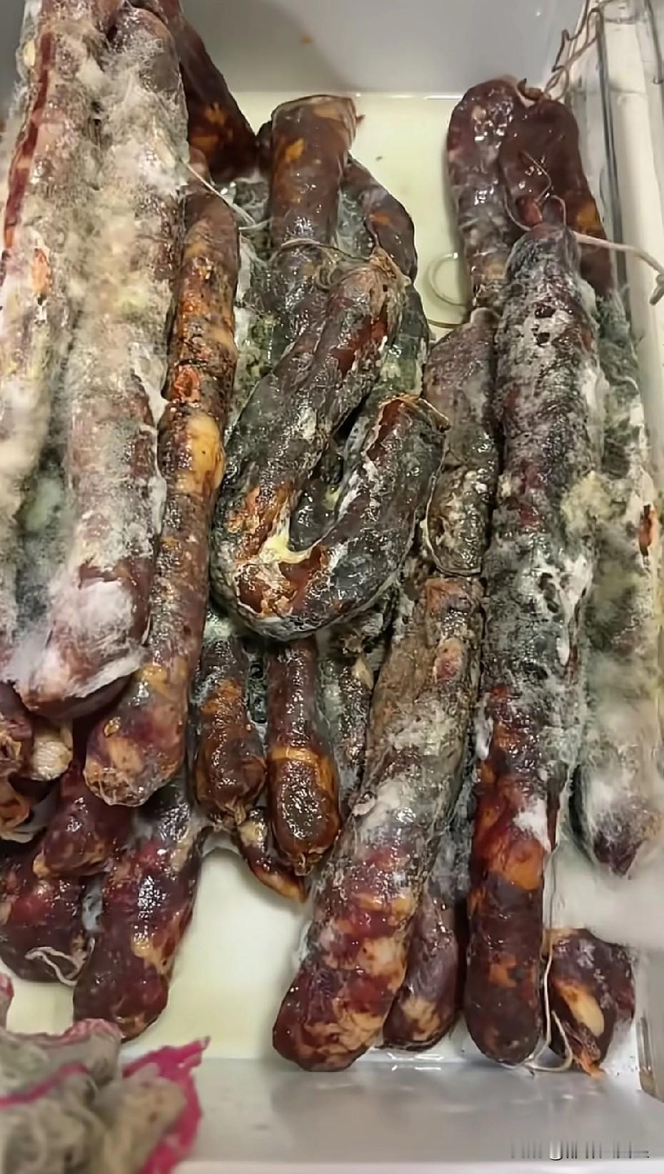 我邻居今年过年做了这么多腊肠,过年几天都是炒的菜,腊肠也没吃几个,今天是大年初十,中午准备拿几个出来当下酒菜,结果一看成这样子了! 唉,多可惜呀!真浪费啊!