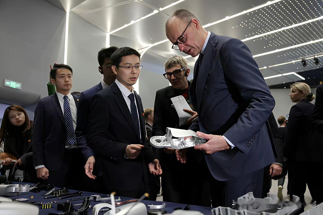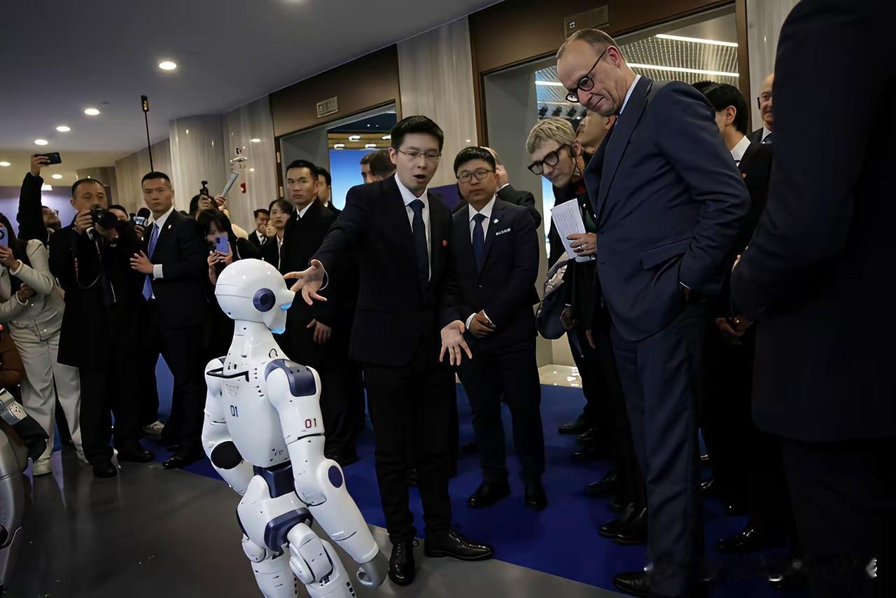 默茨到宇树来参观,被这里的机器人深深吸引住了,看他看机器人的表情,目光是很专注的,也是很投入的,从他的眼神和表情中,能够看出他对我们的机器人是很欣赏的,而且还伸出大拇指为我们的机器人点赞,这次他到宇树来参观,释放的信号也很强烈,说明我们的智造已经让他感兴趣了!