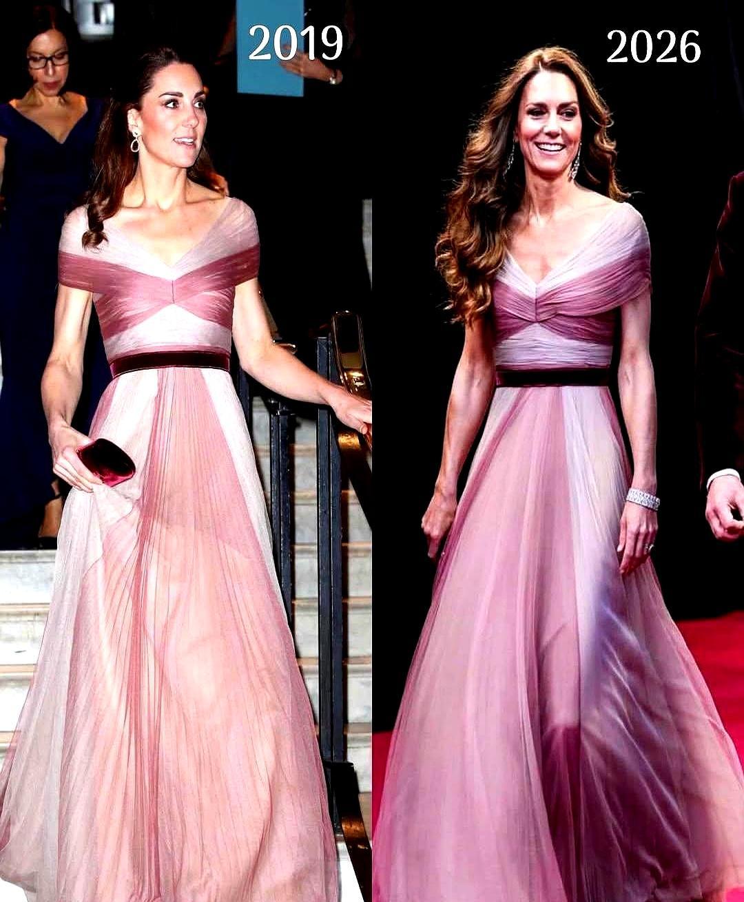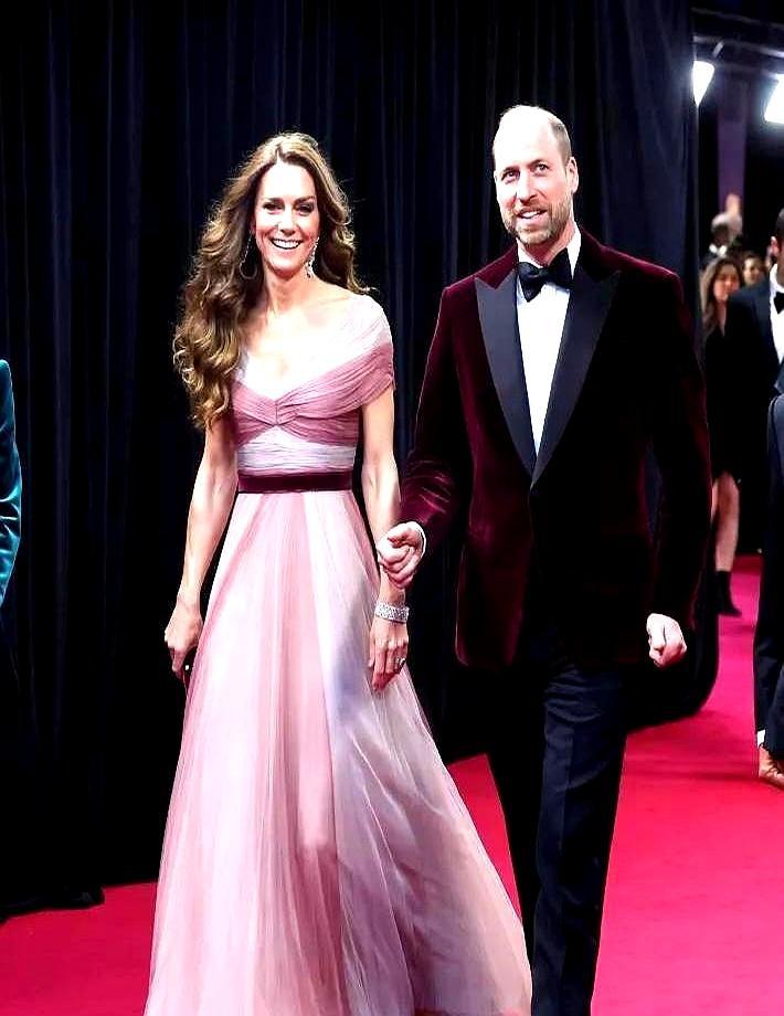癌症康复后首次携手威廉登BAFTA红毯 凯特穿6年前旧裙直接炸场 威廉穿酒红天鹅绒西装 全程目光黏在她身上 偶尔悄悄搭过她的腰 凯特踩细高跟脊背绷得笔直 大波浪卷扫过肩颈 Greville枝形耳环晃得镜头追着拍 去年她还对着镜头说化疗时连抬胳膊都费劲 今年世界癌症日刚讲完抗癌的恐惧 转头就踩上红毯 偏选了2019年那件玫瑰粉Gucci雪纺裙 旧裙藏底气 挺拔显态度 微笑诉倔强 你被凯特这份韧劲儿戳中了吗 评论区唠唠