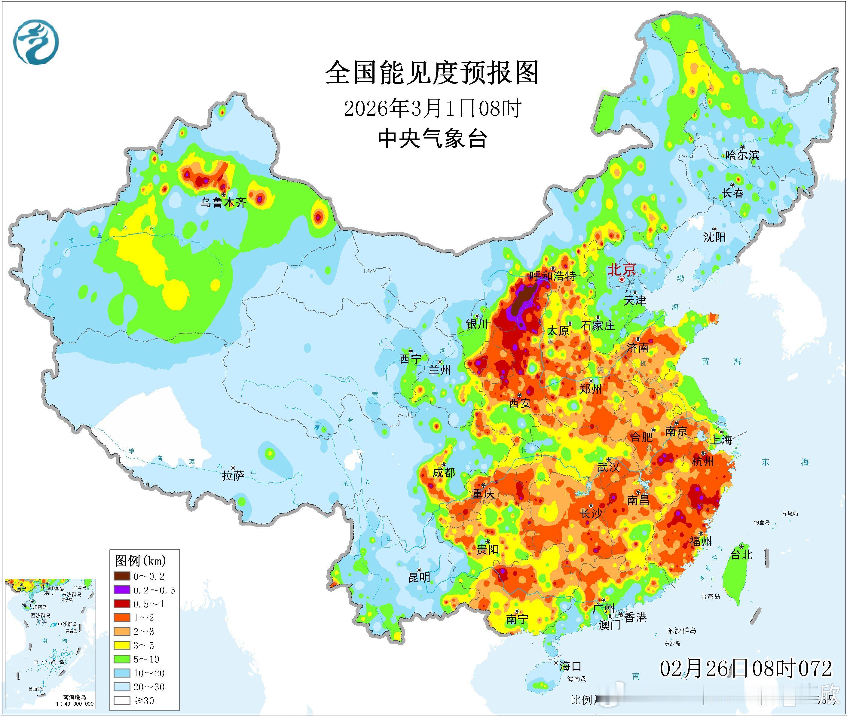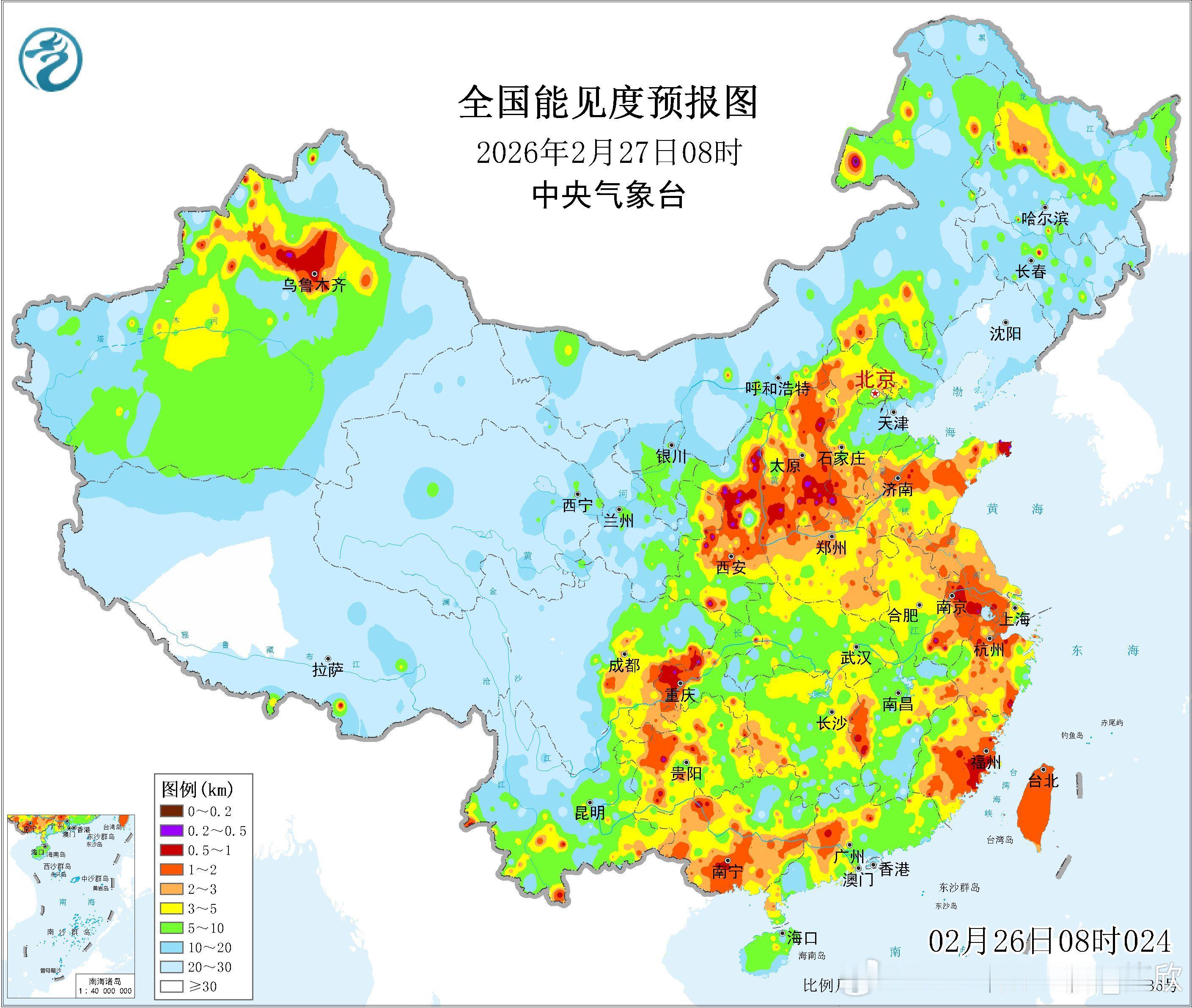 【沙尘和雾】从下午的卫星监测看,新疆塔里木盆地有大量的沙尘维持。克州、喀什、和田持续爆表。和田今天的PM10浓度峰值有2798微克/立方米(4倍多的爆表)。未来3天,塔里木盆地的沙尘会逐渐减弱,但不会彻底结束。此外,近期因为中东部降水频繁,低空湿度大,夜间-清晨时段,要警惕可能有雾,或者雨雾混杂。图7-9为数值预报的未来3天早晨8时的能见度。
