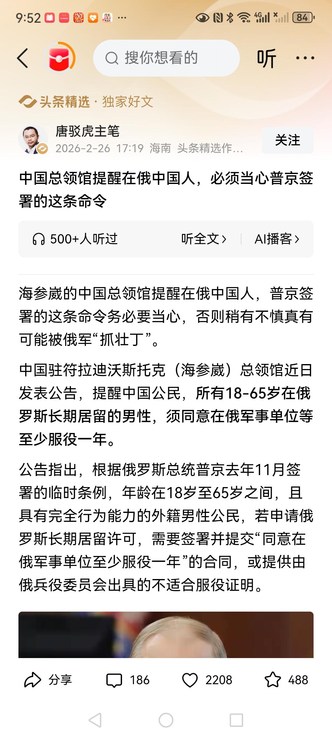 我就不多说了,大家自己看看乌粉都是些什么歪嘴和尚! 人家俄罗斯明文说了,是你申请长期居住在俄罗斯才需要服兵役。换句话,如果你只是短期旅游打工,在俄上学,或者压根就不去申请什么长期居住证就根本不会有事。 除非你是想长期在俄生活才会受影响。 而到了一些乌粉嘴里就直接变成了强制征兵了?可见一些人歪的不止是嘴了.....
