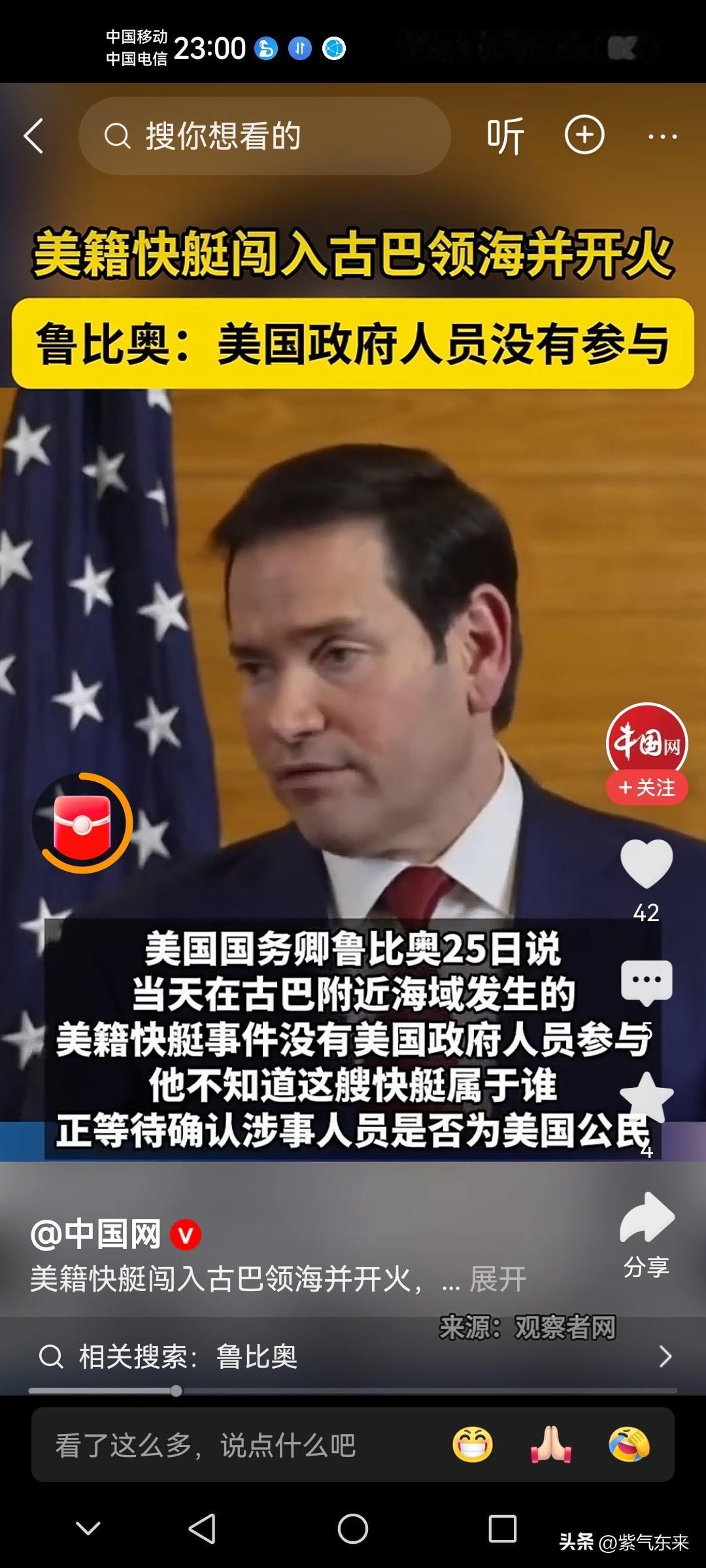 “别拿豆包不当干粮” 古巴虽然实力弱,但是古巴不怂! 对于古巴来说“人狠话不多,你若打我,我必还之”。 美国籍快艇闯入古巴领海,古巴巡逻队例行检查,结果遭到快艇人员开枪攻击,古巴巡逻队员迅速还击,导致四人死亡6人重伤! 美国国务卿鲁比奥针对美籍快艇闯入古巴领海事件称:没有美国政府人员参与,也不清楚这艘快艇是否为美国籍,也不确认涉事人员是否为美国公民,需要进一步确认! 古巴这次一点不怂,强硬手段让美国有时候也无可奈何!社会主义古巴