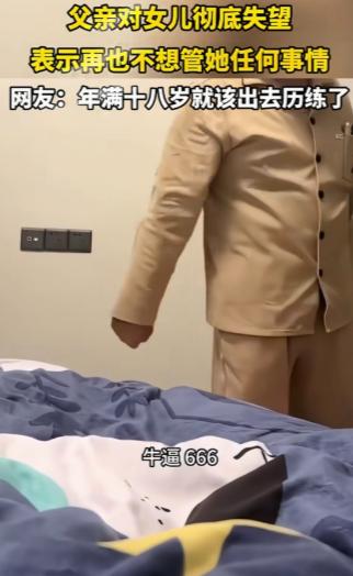 “养个白眼狼?”一父亲指着女儿说:今后我不再给你出1分钱,以后你的任何事情我一概不管,你爱怎样就怎样。女儿讥笑道:这就是你的免责声明,好有意思啊,你们中国大男子汉,你就是不想给钱!父亲气的火冒三丈质问:电脑、平板是不是我买的?女儿一句话直接给父亲气个倒仰,网友:女儿养成这个样,确实让父母恼火。 2月的中国互联网上,甭管那些大屏幕上正滚动着什么宏大叙事,所有人的眼球都被一段糙得不行的家庭录像给死死钉住了。 2月24日,河南戏曲广播转发了这段视频。画面晃晃悠悠的,一个中年男人站在女儿床边,声音里那种近乎绝望的决绝劲儿,听得人心里发堵:“今后不再出一分钱,任何事情一概不管。” 这话听着狠吧?但你细品,这哪是什么威胁啊?这分明就是一个被榨干了的父亲,在进行最后一次无力的挣扎。 然而被窝里那个女孩的反应,直接让人后背发凉。她举着手机,嘴角挂着一丝冷笑,慢悠悠地回了五个字:“免责声明啊?” 就这五个字,瞬间把一场父女之间带着血泪的情感冲突,降格成了一场冷冰冰的法律博弈。她根本不把这当回事,她在嘲讽,那种轻蔑简直要溢出屏幕。紧接着,女孩音量拔高,甩出一句更狠的:“你们中国大男子汉,男子汉大丈夫。” 看到没?这是什么?这是标准的网络话术,是降维打击。她现在不当女儿了,她把自己摆到了审判者的位置上,试图用性别标签把父亲的身份彻底消解掉。 父亲急了,开始翻旧账:“平板是不是我买的?电脑是不是我买的?” 他在干嘛?他在试图用曾经的付出唤醒这孩子的哪怕一点点良心。 可换来的是什么?“牛×666。” 就这三个字,一场本该严肃痛心的父女对话,彻底被拖进了粪坑。视频最后,男人转身离开。那个背影,说不出的疲惫,说不出的无力。 这段视频在2026年的春天炸了锅,评论区简直成了一面照妖镜,无数人在里面看到了自己家的影子。有人说自家那11岁的熊孩子就开始跟爷爷奶奶对着干,动不动就摔门。 还有人说,孩子平时六亲不认,只有要钱的时候才会打电话,钱一到账继续消失在屏幕的蓝光里。当“要钱”成了亲子之间唯一的连接方式,这还叫什么家?这叫单向透支。 但最让人脊背发凉的,还不是那些刻薄的话。而是这个女孩,她把这段极度私密的家庭冲突,主动发到了网上。她想干嘛?想让网友来评评理,想搞一场“公开处刑”。可她不知道的是,这种武器一旦用出去,对亲情的伤害是不可逆的。你赢了舆论,输掉的是血缘。 说到底,这种家庭关系的崩塌,真不是一天两天的事。 评论区里有条高赞建议特别扎心:让孩子干家务。淘米、择菜、倒垃圾,这些不起眼的小事,本质上是在告诉孩子一个最朴素的道理——生活不是天上掉下来的,钱不是从空气里变出来的,是要用劳动去换的。 可惜,太多家长舍不得。舍不得的结果,就是养出一个把父母当提款机的白眼狼。 法律在这件事上其实给出了清晰的边界。《民法典》规定,父母对未成年子女有法定抚养义务。如果这个女孩还没成年,她爸那句“不出钱”,在法律上确实站不住脚。 但是,一旦成年且具备独立生活能力,法定的供养义务就到此为止了。女孩那句“免责声明”,说白了就是对法律的误读。 法律从来没规定父母必须满足子女无底洞一样的欲望,更没规定父母必须跪着给钱。 同样是2026年,另一段视频或许能给这对父女上一课。 大连,一个回西安上班的女儿,死活不肯收母亲给的路费。 母亲没办法,偷偷把一千块钱藏进了干粮里。女儿在车上掰开馒头,看到那叠钱的瞬间,眼泪哗地就下来了。 你把这两个画面放在一起看看:一个是坐在床上冷笑的脸,一个是捧着馒头流泪的脸。差距在哪?不在于家里有没有钱,而在于这个孩子心里,有没有把父母当人看。 当一个孩子把父母当成无限额度的提款机,在他眼里,父母就不再是活生生的人了,而是一个应该随叫随到的工具。工具坏了,换一个就是,有什么好心疼的? 视频里那段戛然而止的对峙,绝不仅仅是一个家庭的悲剧。它在拷问每一个人:当最亲的血缘被折算成银行卡里的数字,当“免责声明”取代了心疼,当孩子把录像当武器、把网络当法庭,那个叫做“家”的地方,到底还能剩下什么?