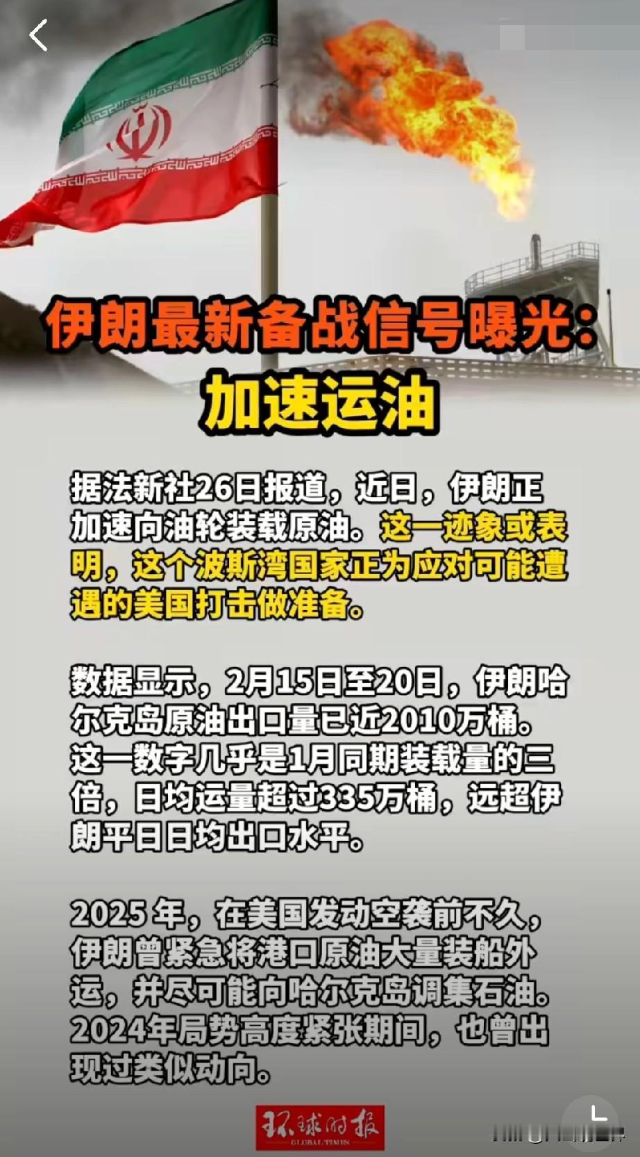 反常信号!伊朗突然疯狂运油,历史一幕正在重演 法新社2月26日消息,伊朗近期