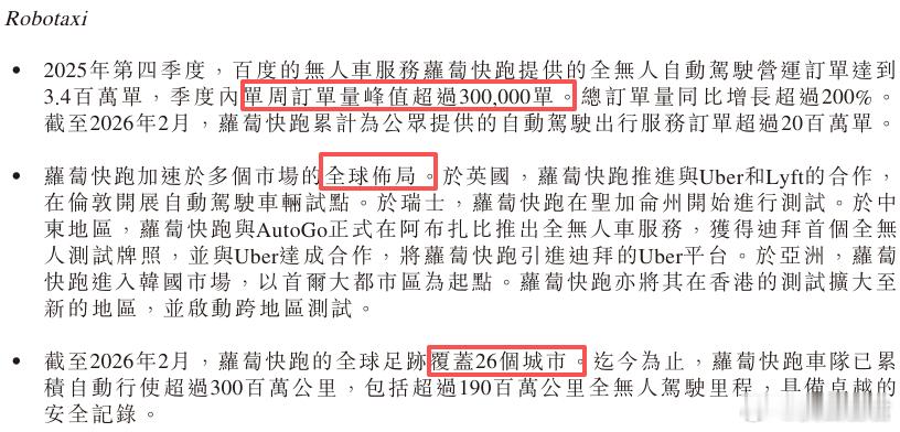 据说单周订单量峰值超过30万单,全年下来,萝卜快跑的订单量已经超过1000万单。算下来,平均每天订单量超2.7万单。啊~那以后35岁失业,咱还能跑滴滴嘛?并且,萝卜快跑覆盖的城市,也增加到了26个城市。其实,百度在AI、萝卜快跑之外,还有一张王牌——昆仑芯。据悉,昆仑芯已经以“保密形式”分拆赴港上市。百度造芯片,究竟做得如何,拭目以待了。