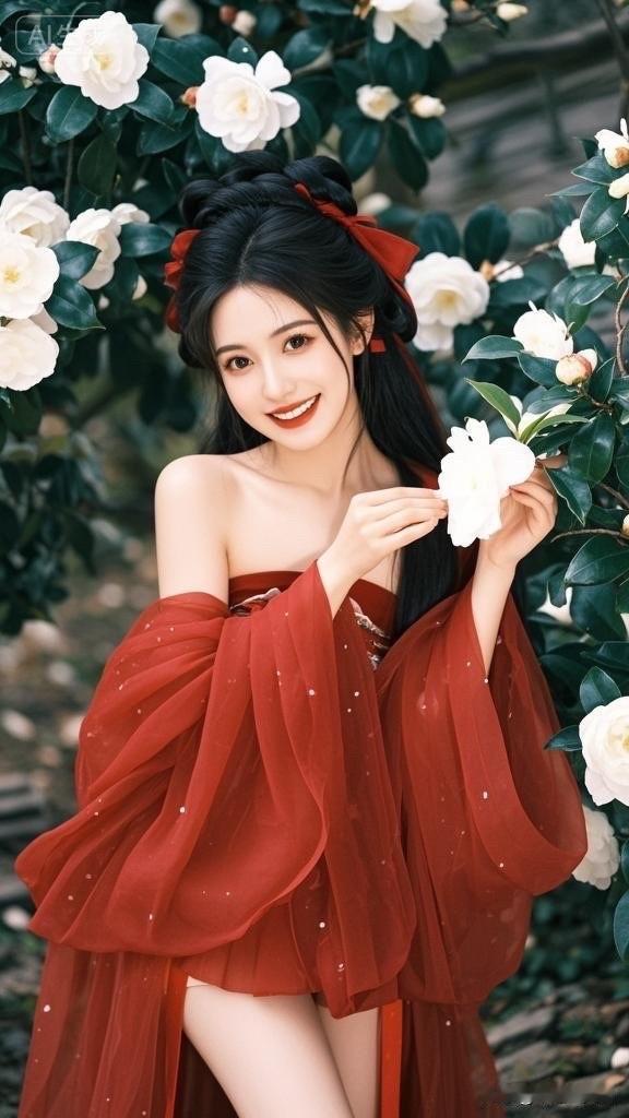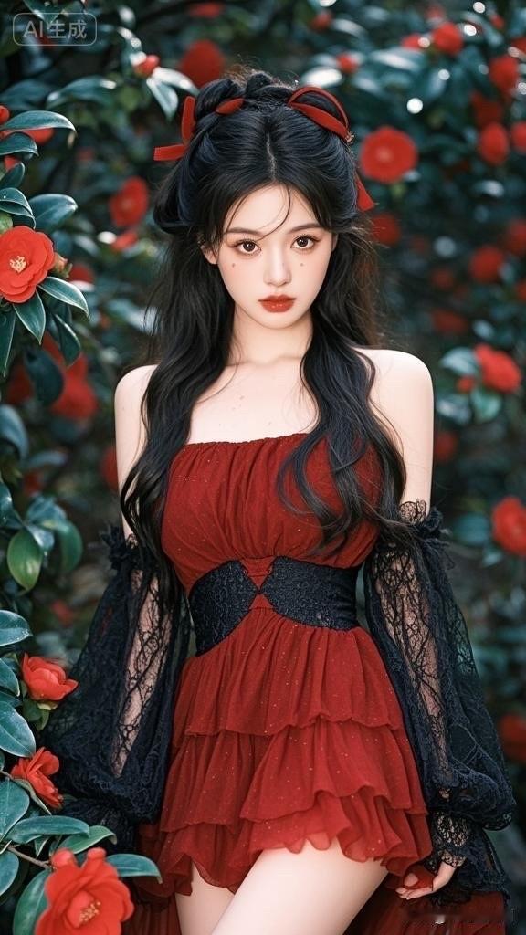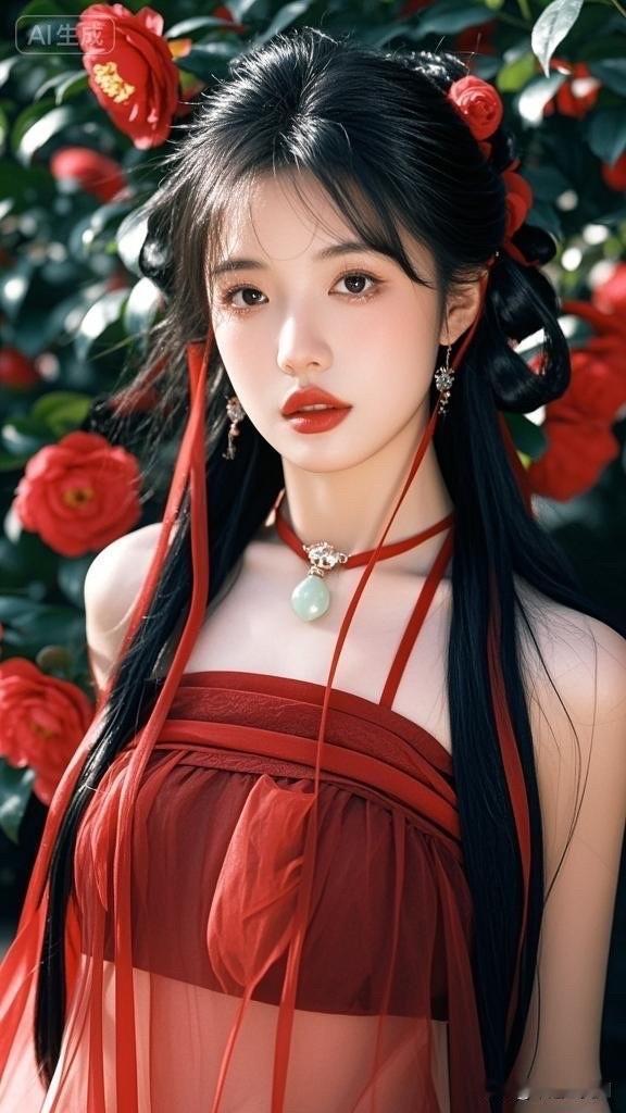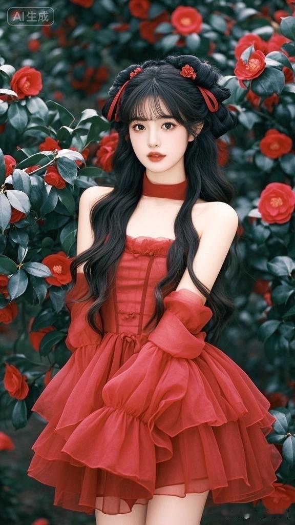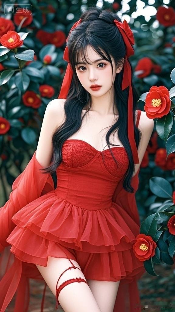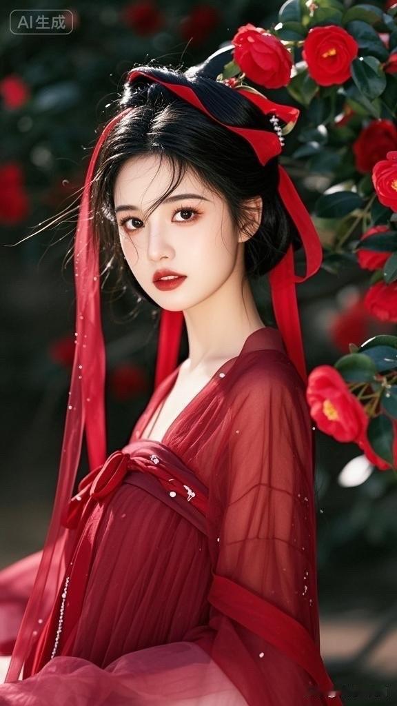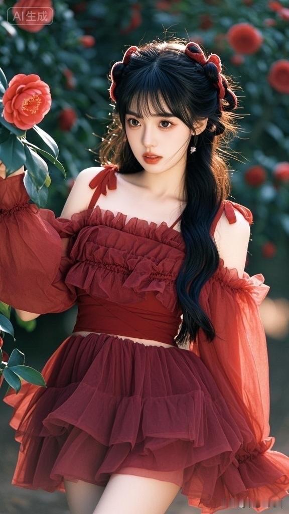 红衣少女与玫瑰的浪漫邂逅🌹💖