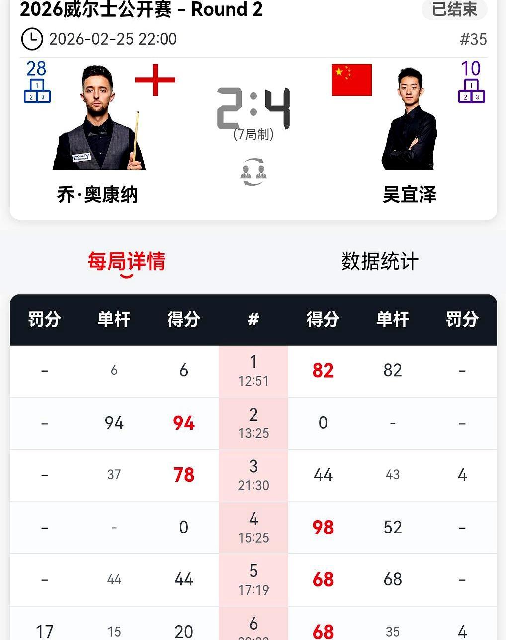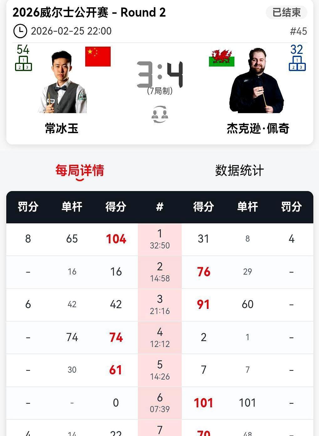 常冰玉刚轰四连破百创历史,转头就3-4惜败出局! 吴宜泽1-2落后还吃了犯规判罚,硬扛着长台准度拉满,4-2逆转乔奥康纳,现在正跟大卫格雷斯死磕。江俊更猛,先干翻塞尔比,又4-0横扫袁思俊,下轮碰罗比威廉姆斯。 肖国栋3-1领先被利索夫斯基连追三局翻盘,庞俊旭2-4输给霍金斯。赵心童张安达也稳,分别4-2拿下对手,下轮要碰宾汉姆和希金斯。 有人创造历史,有人逆势翻盘,有人遗憾止步。你觉得中国军团谁能走到最后?评论区唠唠!