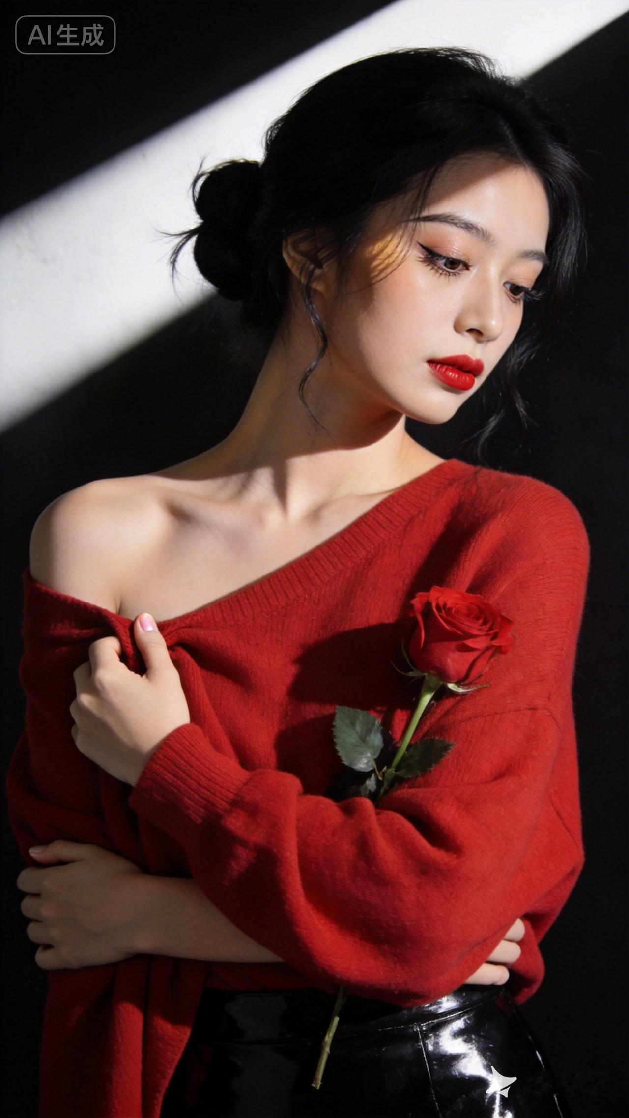 她轻轻抚摸着玫瑰花瓣,眼神里满是温柔与陶醉。这一刻,红衣少女与玫瑰的邂逅,成了时