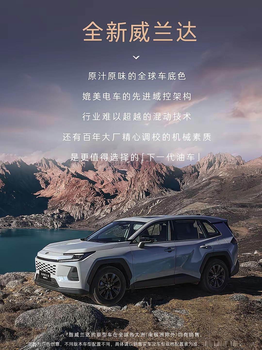 赴一场诚意之约——威兰达AIR版,家用SUV的温柔答案。 ①风掠过车身,复刻北美原野的硬朗线条,威兰达AIR版以全球原版设计,静立成风景。威兰达AIR版整车外观,蜂窝格栅搭配C形大灯,黑化轮圈与后视镜,尽显大气质感。没有浮夸修饰,只把实用与安心,揉进每一处细节。两驱标配LSD限滑差速器,寻常路平稳从容,泥泞冰雪亦能稳妥前行,家用车也藏着奔赴远方的底气。 ②13.78万起的权益价,打破低价即减配的惯例。皮质座椅包裹日常通勤,主驾电动调节适配每一种姿态;外后视镜加热驱散雨雾,64色氛围灯点亮归途;50W无线快充,告别电量焦虑。威兰达AIR版内饰全景,14英寸大屏、氛围灯与皮质座椅交织,温馨又高级。TSS 4.0智驾全程守护,全速域跟车、自动刹车、8气囊兜底,新手亦能安心上路。14英寸大屏联通三平台,语音控空调、开天窗,智能从不缺席。 ③汽油版务实稳妥,混动版更懂生活。4.59L百公里油耗,一箱油驰骋千里,静谧平顺如电车,年年省下油费,把实惠留给家人。厂家终身质保,为发动机、变速箱、电池兜底,消除用车顾虑;2099元4次原厂保养,全国通用无隐形消费,养车透明又轻松。8年低息,首付1.4万,月供千元出头,购车门槛温柔可亲。 ④不追逐噱头,只坚守初心。 威兰达AIR版以入门价,给到顶配体验;用可靠品质,回应每一份信任。它不只是代步工具,是三餐四季的陪伴,是家人出行的港湾,是15万内,写给家用SUV最真诚的情书。 选择它,便是选择省心、省钱、安心的用车时光,在平凡日子里,收获稳稳的幸福。
