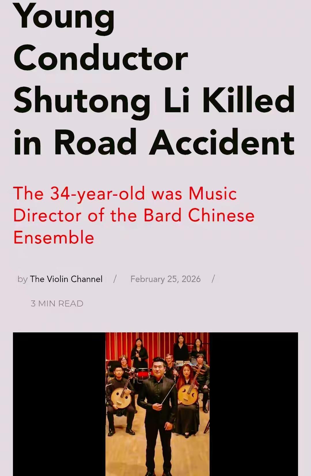 深夜纽约路边换胎,35岁中国音乐指挥家李梳曈被卡车撞倒身亡,留下年轻的妻子和1岁幼子与破碎的音乐桥梁梦 命运有时像一场荒诞的戏剧。前一秒,他的双手还在空中划出旋律的弧线,指挥着中美乐器共鸣;后一秒,却倒在纽约州卡茨基尔冰冷的公路路肩,生命戛然而止。李梳曈,这位被美国巴德学院校长盛赞为“青年桥梁”的音乐家,在2月11日深夜,因为一次普通的爆胎,人生乐章被迫画上休止符。 那个夜晚,他刚结束春节音乐会的排练,怀揣着对艺术的热情驾车回家。轮胎突然爆裂,他像无数在异乡打拼的人一样,选择自己动手更换。没有三角警示牌,没有反光背心,只有手机那点微弱的光。一辆超速的卡车驶来,将他撞飞。抢救持续了两天,最终在妻儿的陪伴下,他永远合上了双眼。 他的故事,远不止于一场意外。1991年生于内蒙古鄂尔多斯,理工科出身,却为音乐梦想毅然赴美。从新墨西哥大学到顶尖的巴德学院,他硬是在陌生的土地上,用指挥棒为自己闯出一片天。他领导的民族室内乐团,巧妙融合二胡与西洋弦乐,让《二泉映月》等中国旋律在异国社区回响。 这场悲剧撕开了一层温情的面纱。数据显示,美国近年类似路边修车致死事故中,超八成缺乏基本防护。许多海外游子,忙于应对生活与理想,却可能忽略了这些保命的“常识”。艺术家的专注,在生存现实面前,有时显得如此脆弱。他的离世,是一个个体家庭的灭顶之灾,也折射出在异乡漂泊者普遍面临的安全隐忧。 巴德学院的悼词充满赞誉,却未见后续实质的安全倡议或家庭援助计划。卡车司机的责任追究,在报道中也语焉不详。一场意外之后,体系的缝隙与关注的短暂,令人唏嘘。他的音乐桥梁或许部分坍塌了,但社会支持与安全保障的桥梁,是否同样需要检视与加固? 最深的痛楚留给了家人。一岁的儿子将只能通过影像认识父亲;妻子面对的是突如其来的孤寂与重担;远在内蒙的父母,承受着白发人送黑发人的跨国哀伤。他奋斗半生积攒的梦想与荣光,瞬间化为了亲人余生难以愈合的伤口。 从草原到国际舞台,李梳曈的人生本是一曲激昂的奋斗交响乐。他证明了热爱可抵万难,文化可以交融。然而,这所有关于音乐、文化与个人成就的叙事,最终败给了一次公路上的偶然。他的离去,迫使我们去思考:在追逐星辰大海的路上,我们是否也为脚下的安全,系好了“安全带”? 希望他的故事,能成为一声长鸣的警钟。无论身在何方,安全永远是那根最不能松懈的弦。愿每一位在外的奋斗者,既能勇敢追梦,也能平安归家。他的音乐或许暂歇,但关于生命与安全的反思,应当持续回响。 (来源:综合自扬子晚报、大象新闻、巴德学院官方声明等媒体报道) 海外安全 人生无常