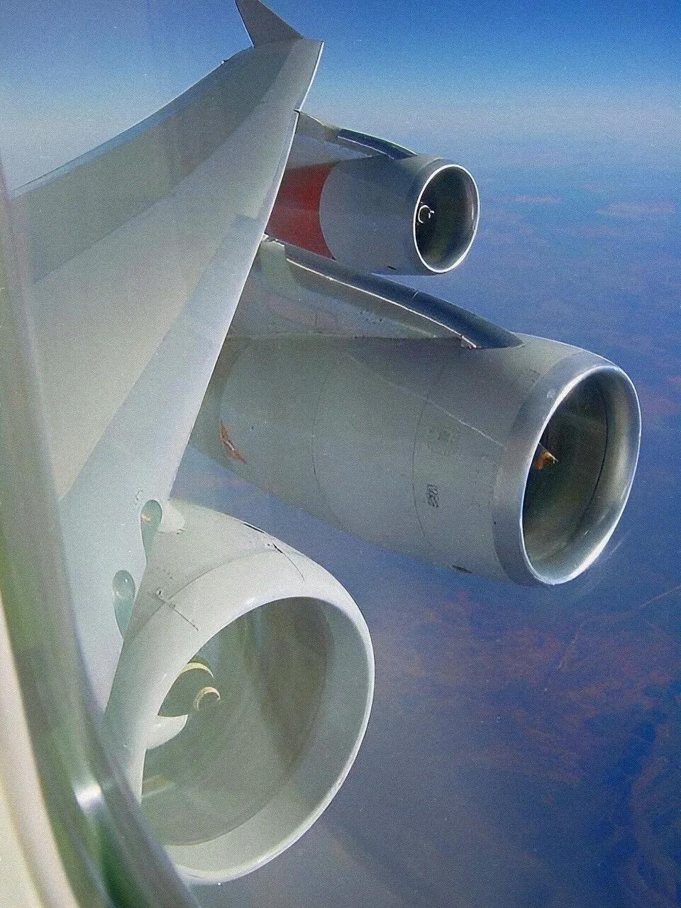 一架波音 747 在机翼下方运输第五台发动机的画面。所谓的“第五发动机吊舱运输”。它使航空公司能够将备用发动机运送到需要更换发动机的飞机所在地。